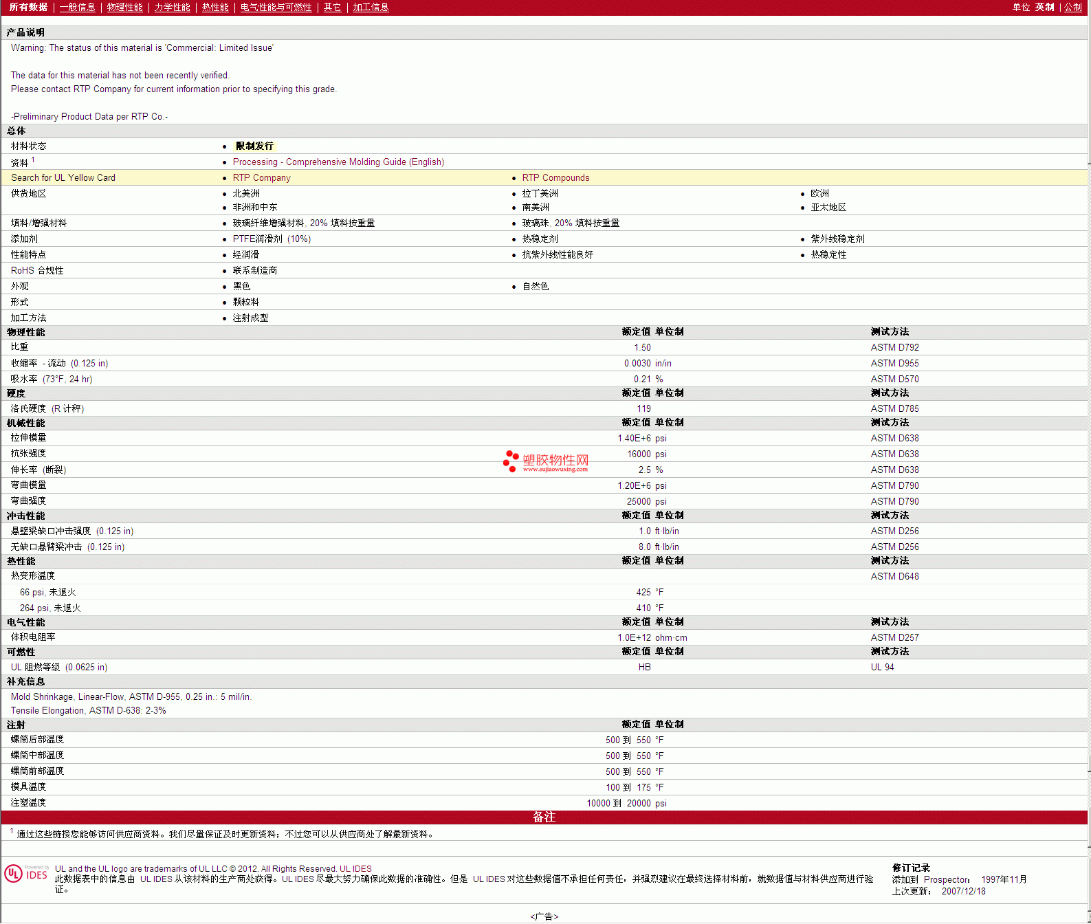 需了解RTP Compounds PTFE 203B GB 20 TFE 10 HS UV 物性表材质证明、ROHS(SGS)报告、物质安全资料表(MSDS)、UL黄卡等可来电咨询:赵先生:13424755533或QQ: 27660005
