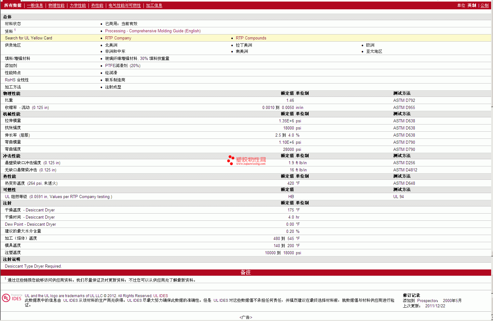需了解 RTP Compounds PTFE 205 D TFE 20 物性表材质证明、ROHS(SGS)报告、物质安全资料表(MSDS)、UL黄卡等可来电咨询:赵先生:13424755533或QQ: 27660005