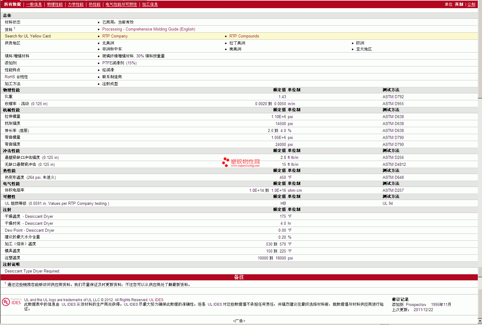 如需了解RTP Compounds PTFE 205 H TFE 15 物性表更多详情,ROHS(SGS)报告、物质安全资料表(MSDS)、材质证明、UL黄卡等,最新行情报价等可来电咨询:赵先生:13424755533或QQ: 27660005
