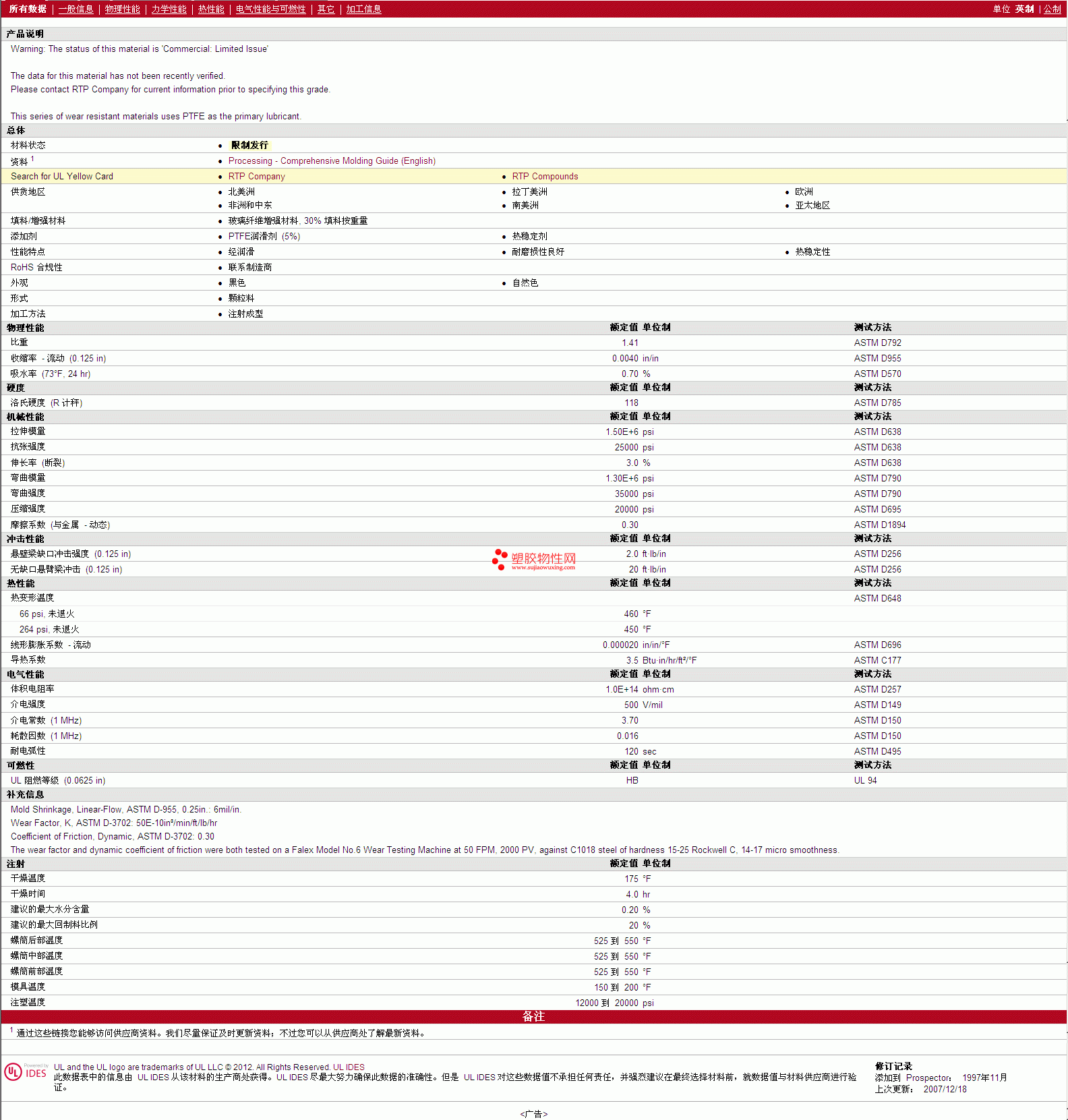 如需了解RTP Compounds PTFE 205 TFE 5 HS 物性表更多详情,ROHS(SGS)报告、物质安全资料表(MSDS)、材质证明、UL黄卡等,最新行情报价等可来电咨询:赵先生:13424755533或QQ: 27660005