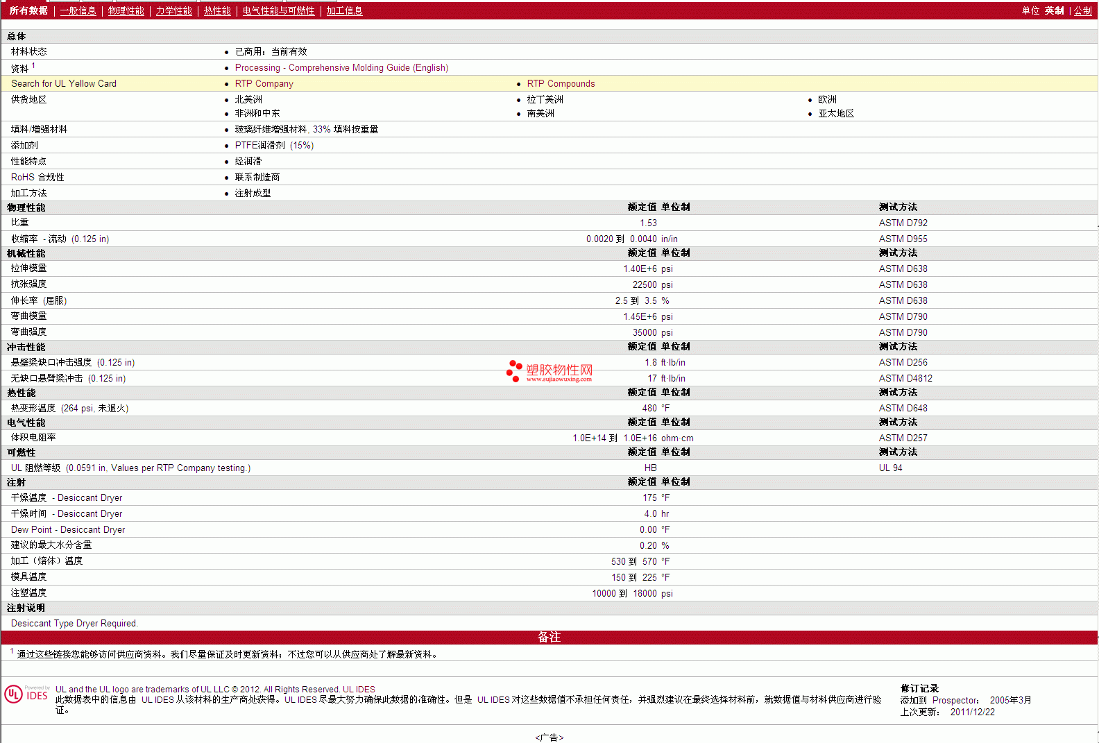 更多RTP Compounds PTFE 205.3 TFE 15 物性表报价,图片、材质证明、UL黄卡、物质安全资料表(MSDS)等可来电咨询赵先生:13424755533或QQ: 27660005