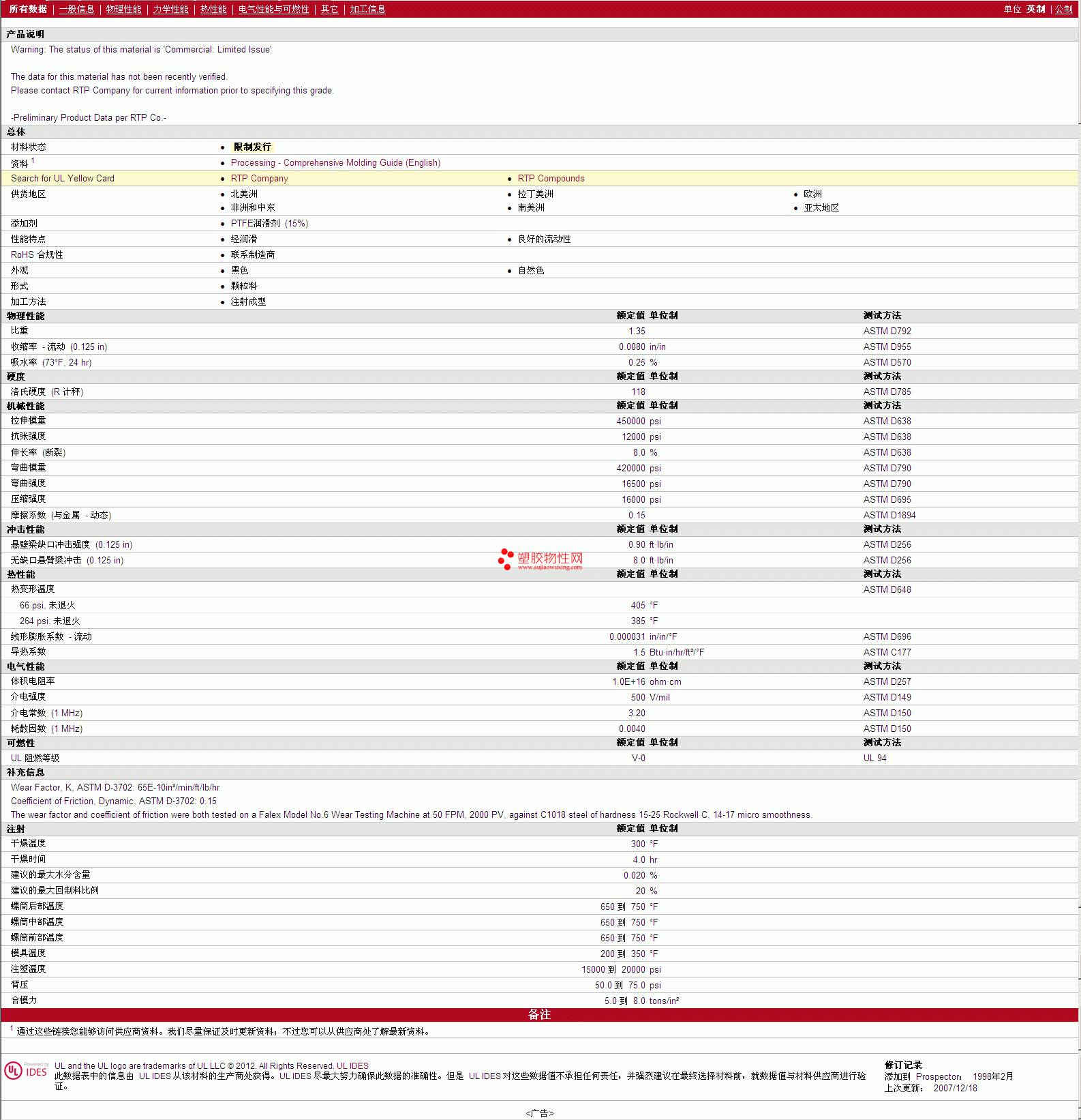 RTP Compounds PTFE 2100 HF TFE 15更多资料见图