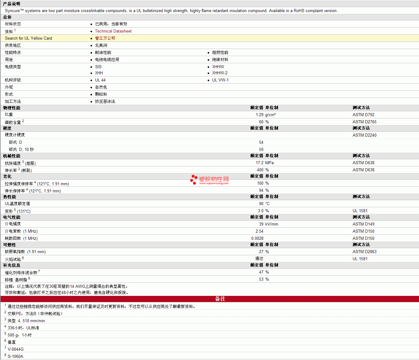 Syncure xlpe System S110FV物性表 更多资料见下图