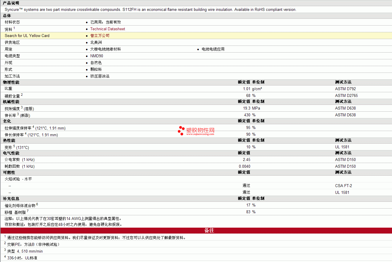 Syncure xlpe System S112FH物性表 更多资料见下图