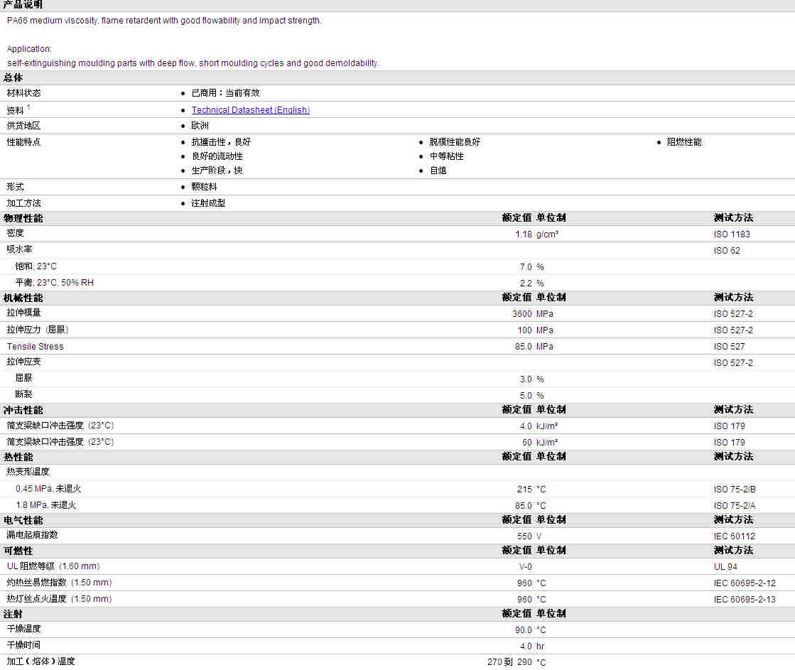 TEREZ PA66 7600 FL HFTEREZ PA66 7600 FL HF物性表资料