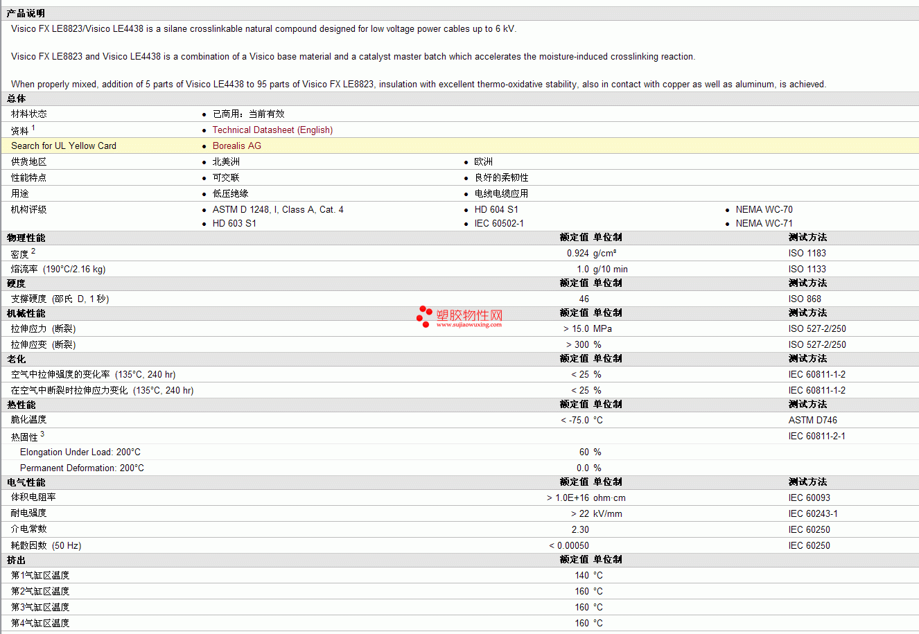 Visico FX LE8823/LE4438物性表 更多资料见下图