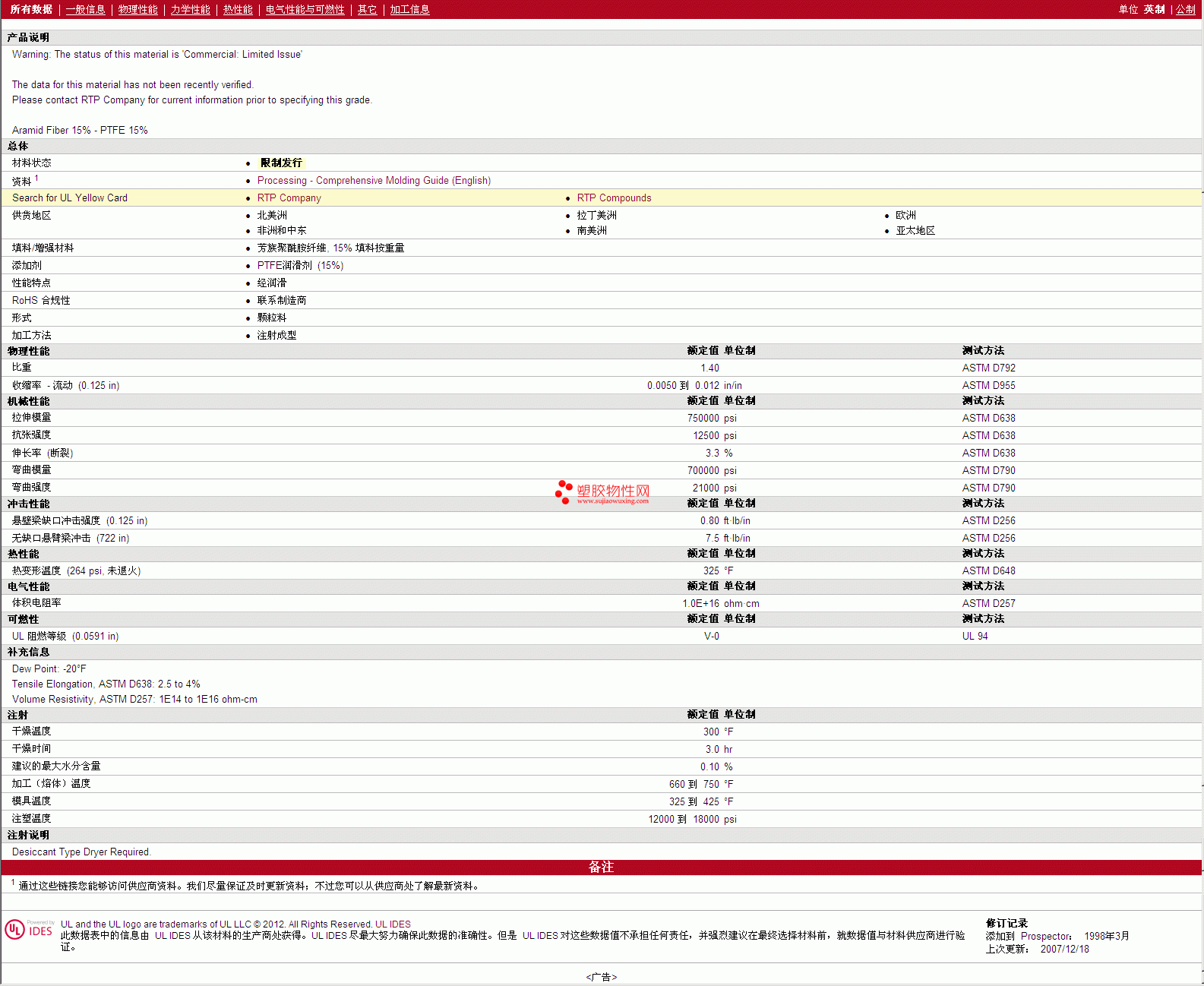 更多RTP Compounds PTFE 2200 AR 15 TFE 15 物性表图片,报价、物质安全资料表(MSDS)、材质证明、UL黄卡等,最新行情报价等可来电咨询赵先生:13424755533或QQ: 27660005