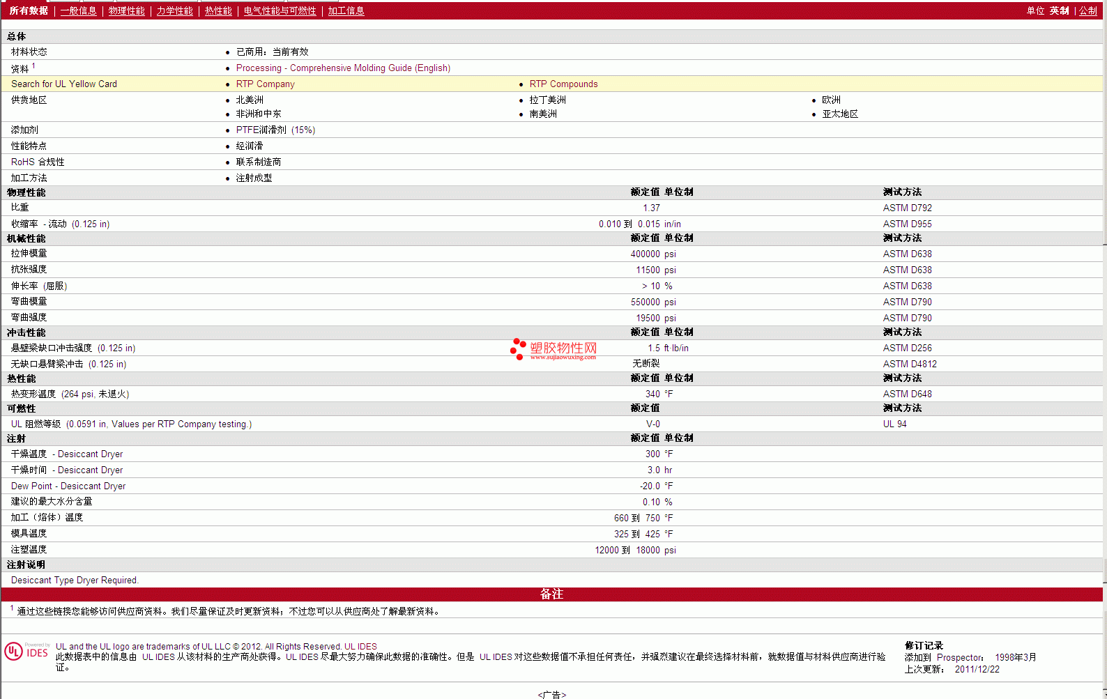 RTP Compounds PTFE 2200 LF TFE 15详细情况如图