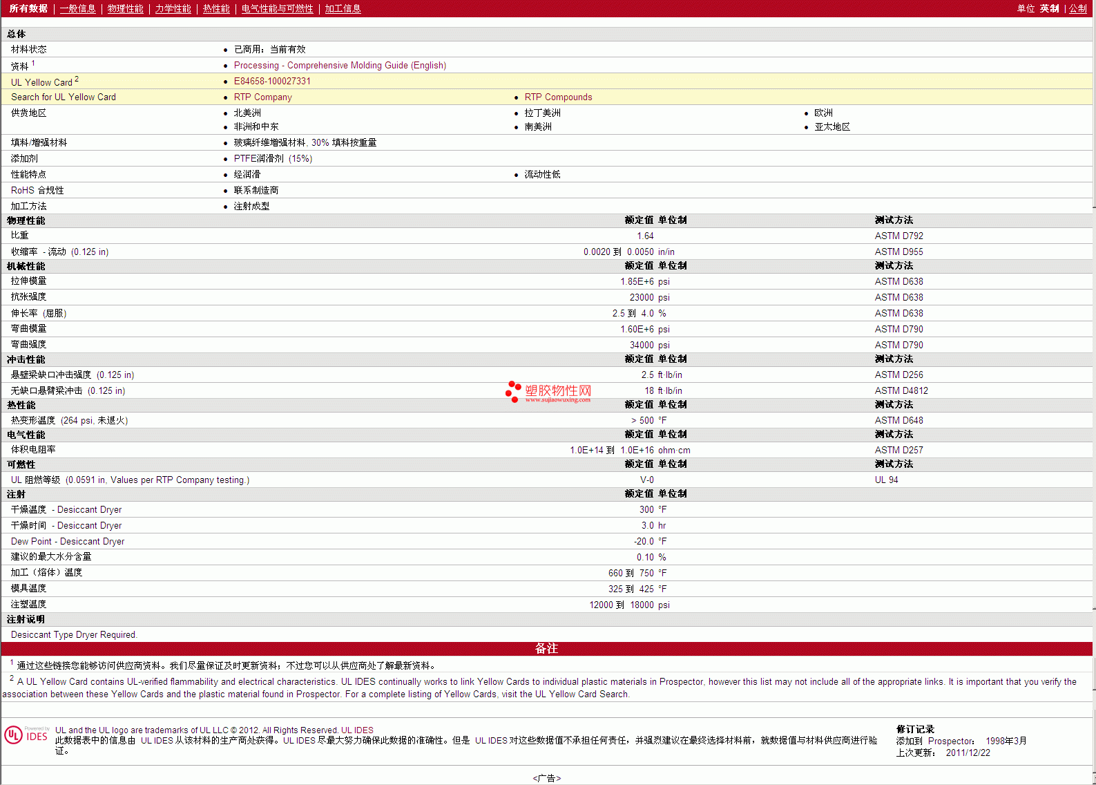 需了解RTP Compounds PTFE 2205 LF TFE 15 物性表材质证明、ROHS(SGS)报告、物质安全资料表(MSDS)、UL黄卡等可来电咨询:赵先生:13424755533或QQ: 27660005