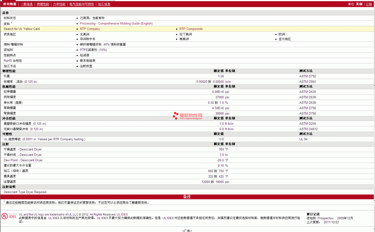 更多RTP Compounds PTFE 2287 HF TFE 15 物性表报价,图片、材质证明、UL黄卡、物质安全资料表(MSDS)等可来电咨询赵先生:13424755533或QQ: 27660005