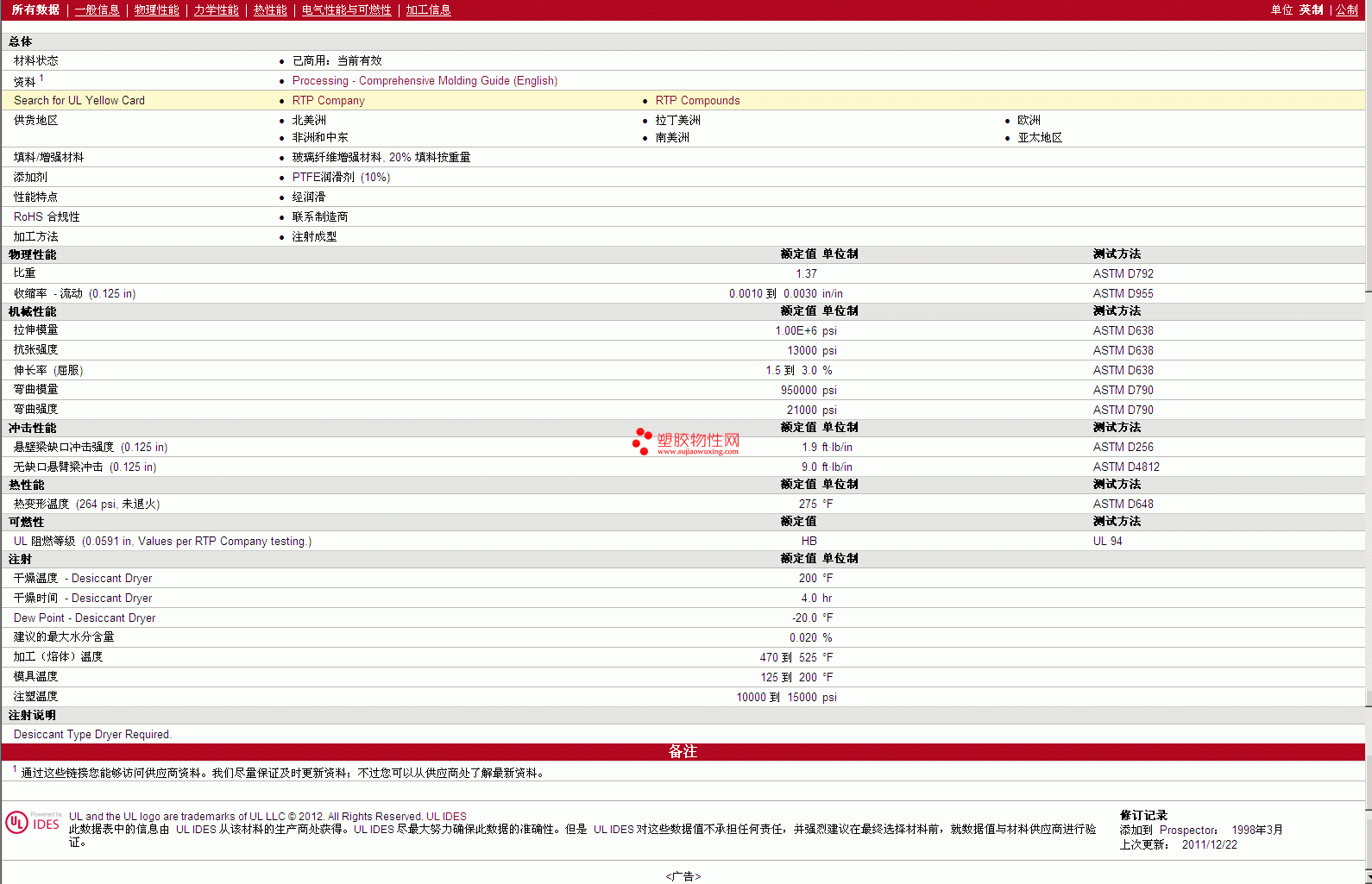 更多 RTP Compounds PTFE 2503 TFE 10 物性表报价,图片、材质证明、UL黄卡、物质安全资料表(MSDS)等可来电咨询赵先生:13424755533或QQ: 27660005