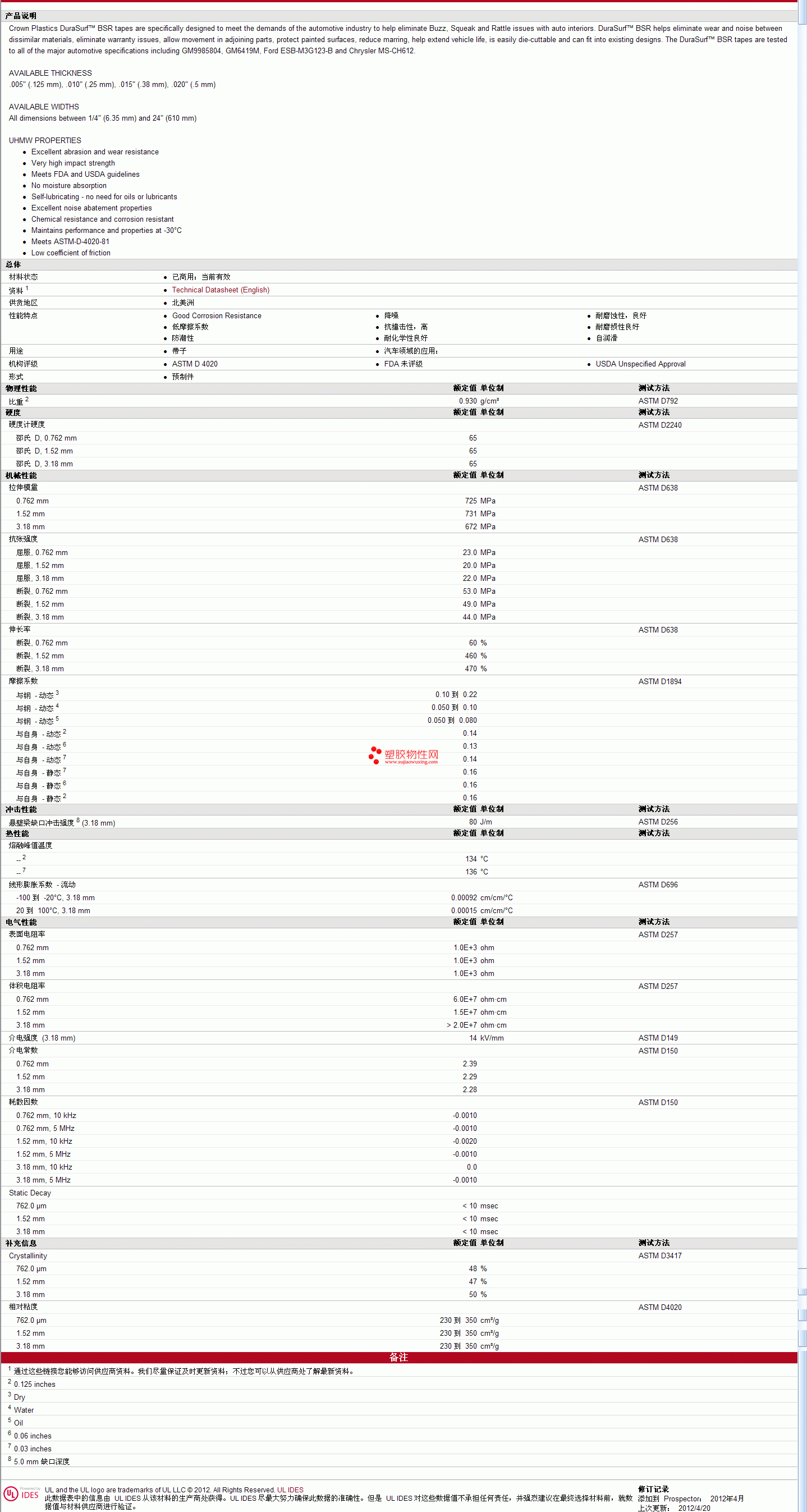 DuraSurf uhmwpeBSR物性表更多资料见下图