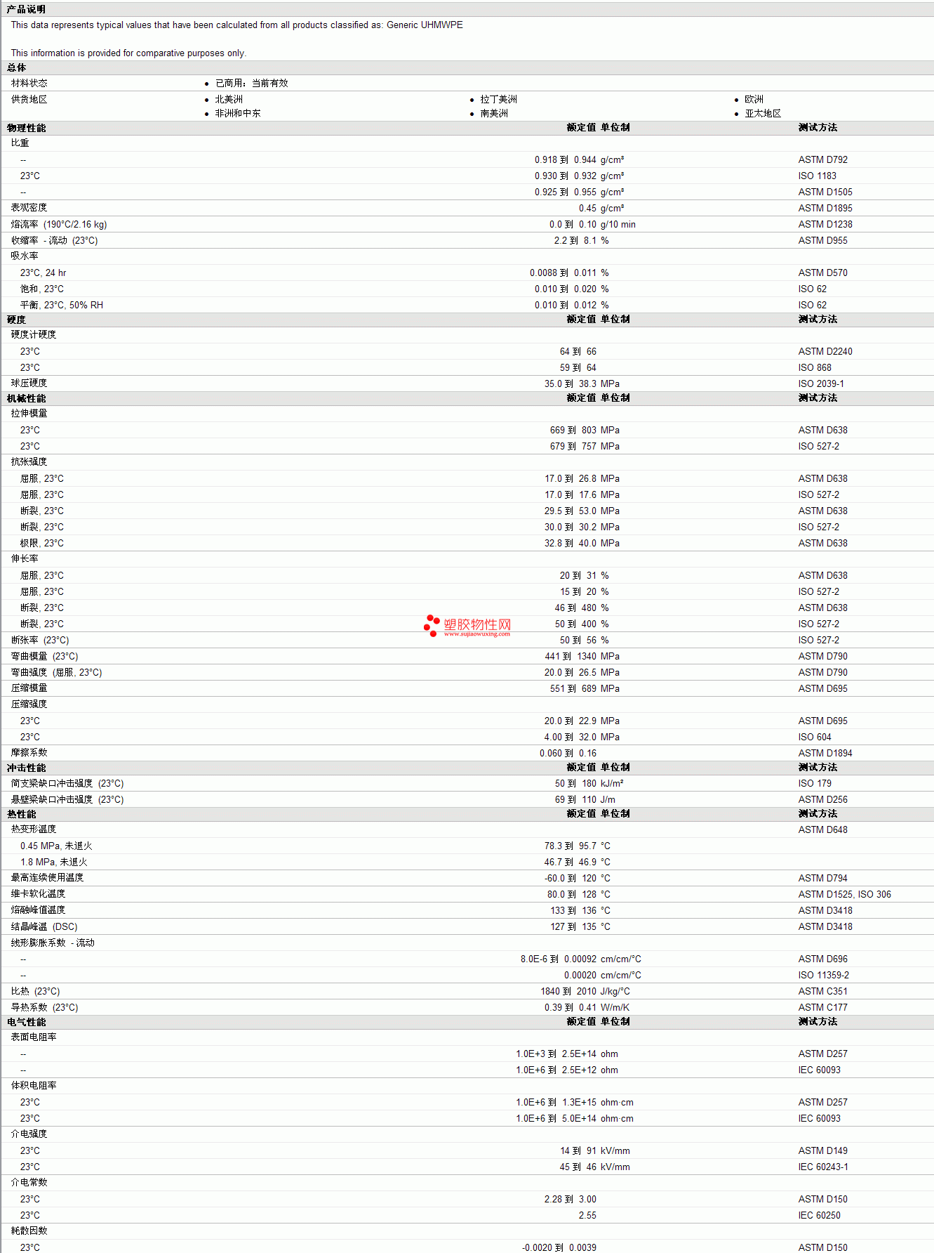 Generic UHMWPE物性表更多资料见下图