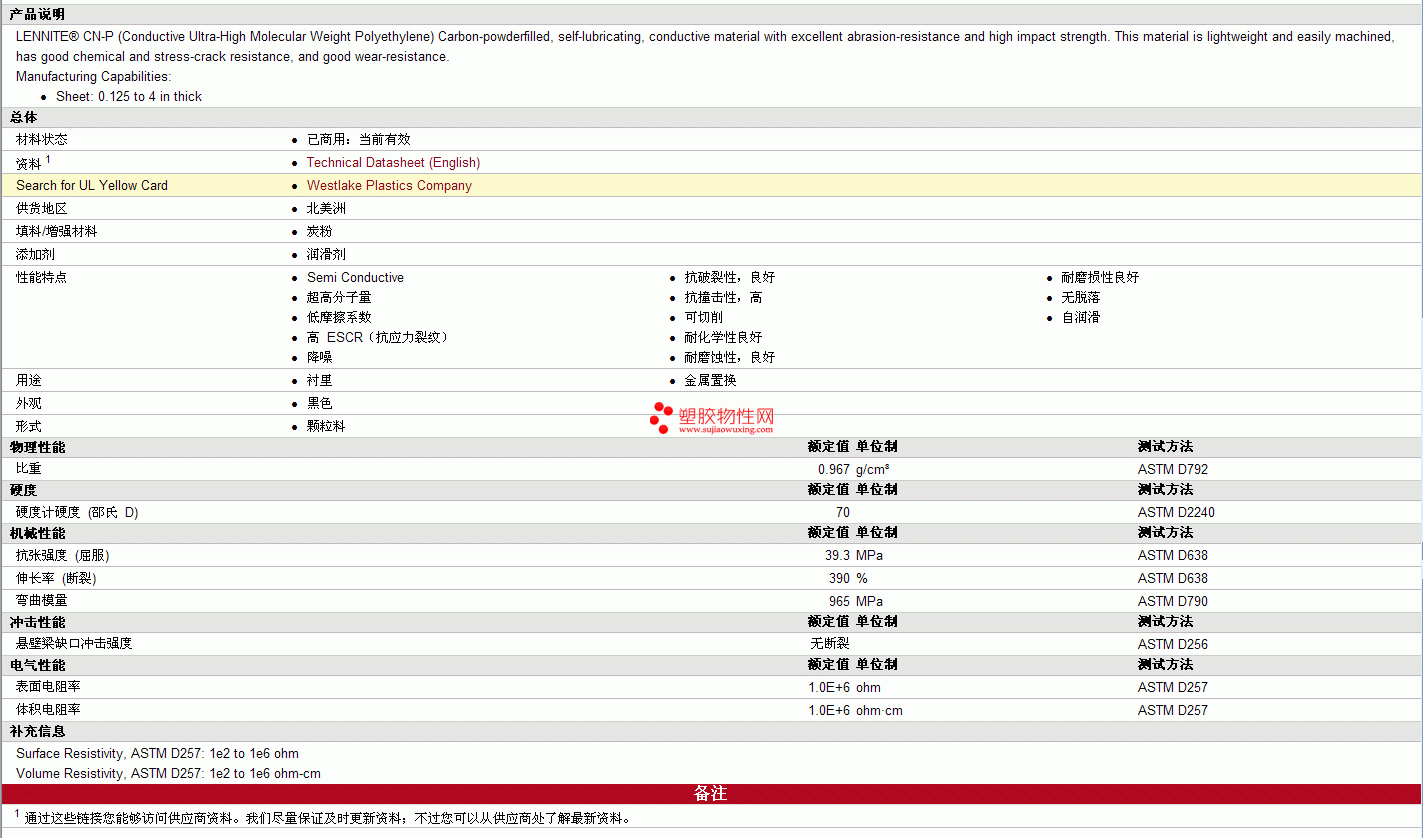 Lennite uhmwpe CN-P物性表 更多资料见下图