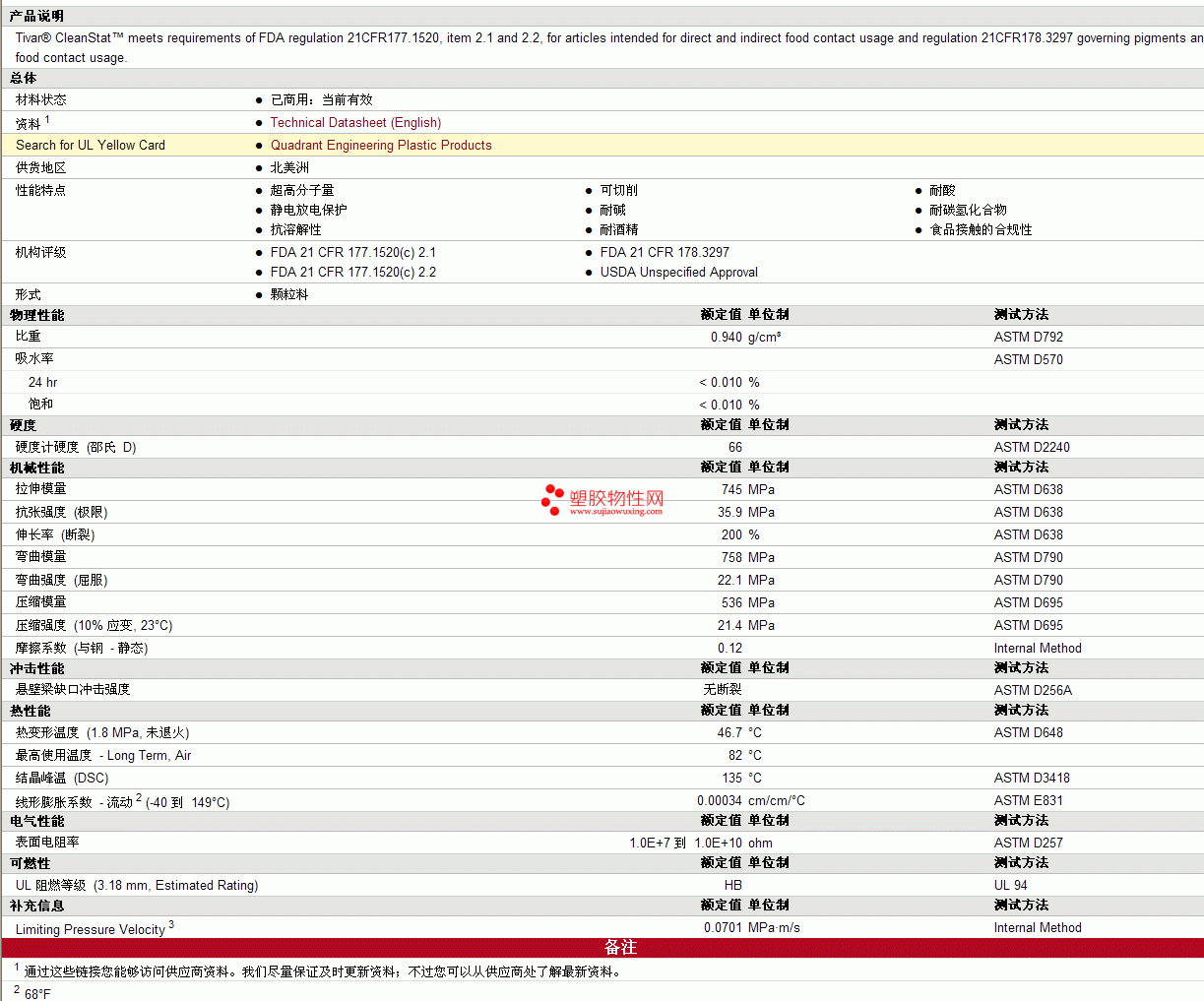 Quadrant EPP TIVAR CleanStat物性表见图片