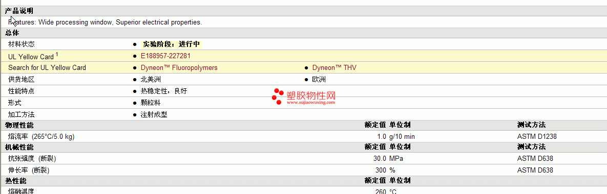 Dyneon THV FEP X 6301物性表 见图片
