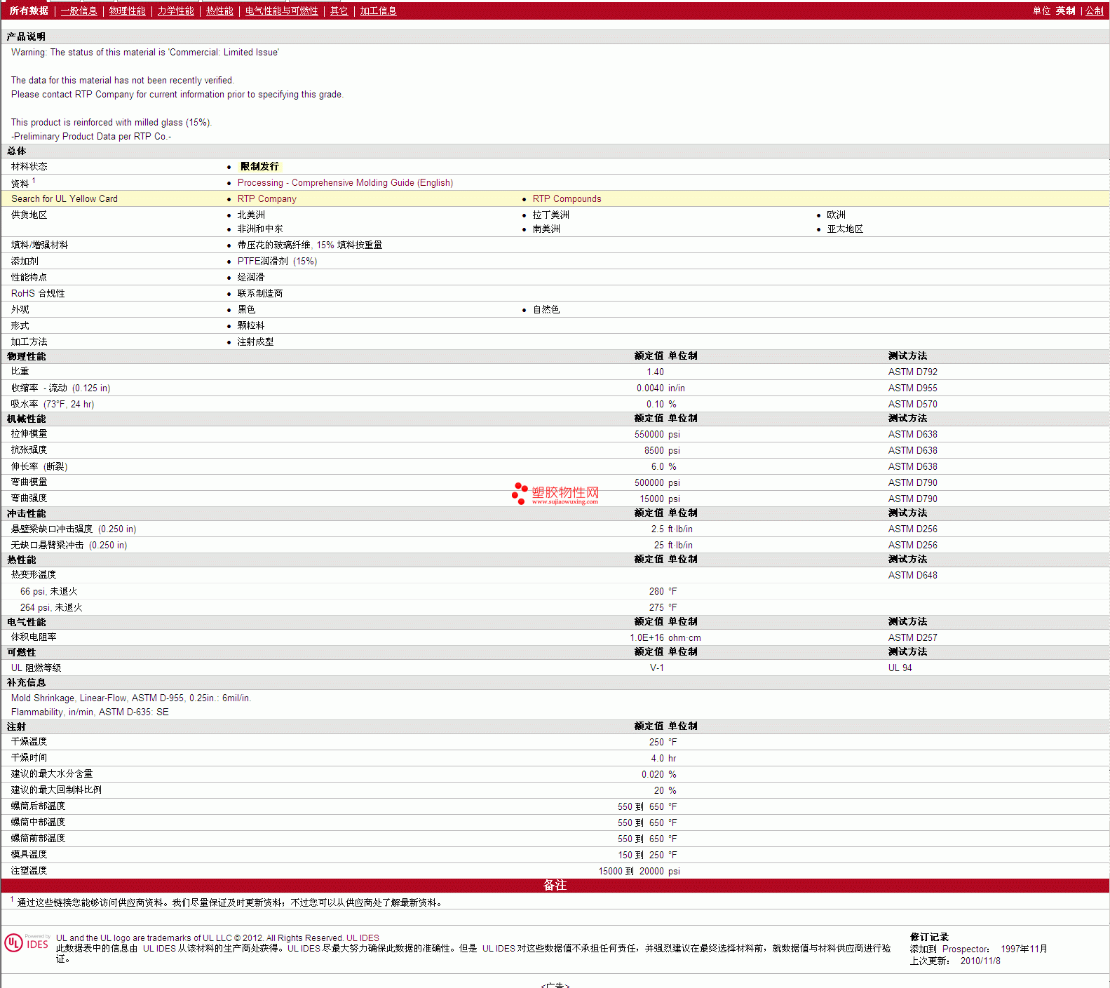 需了解RTP Compounds PTFE 300 MG 15 TFE 15 物性表材质证明、ROHS(SGS)报告、物质安全资料表(MSDS)、UL黄卡等可来电咨询:赵先生:13424755533或QQ: 27660005
