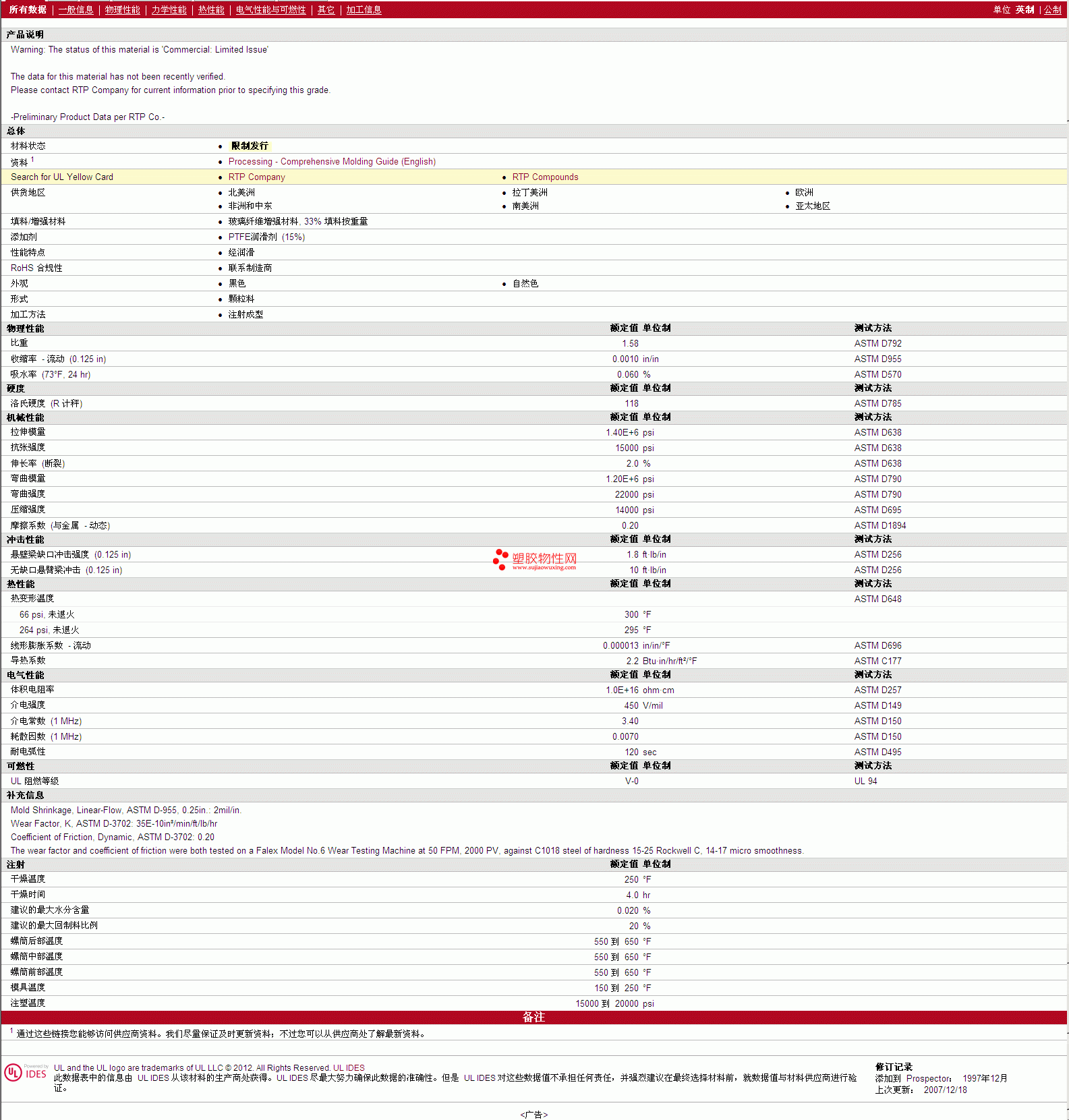 RTP Compounds PTFE 305.3 TFE 15详细情况如图