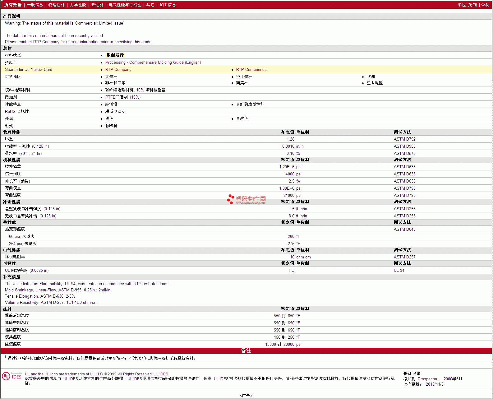 RTP Compounds PTFE 381 TFE 10 EM 更多资料见图