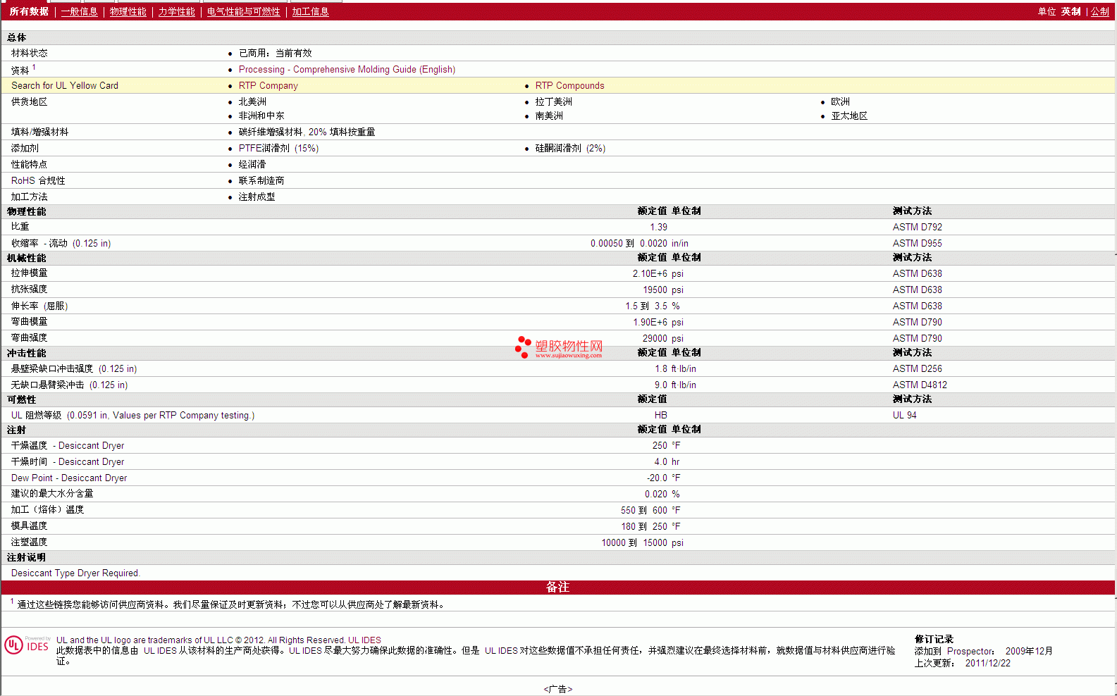 如需了解 RTP Compounds PTFE 383 TFE 15 SI 2 物性表更多详情,ROHS(SGS)报告、物质安全资料表(MSDS)、材质证明、UL黄卡等,最新行情报价等可来电咨询:赵先生:13424755533或QQ: 27660005