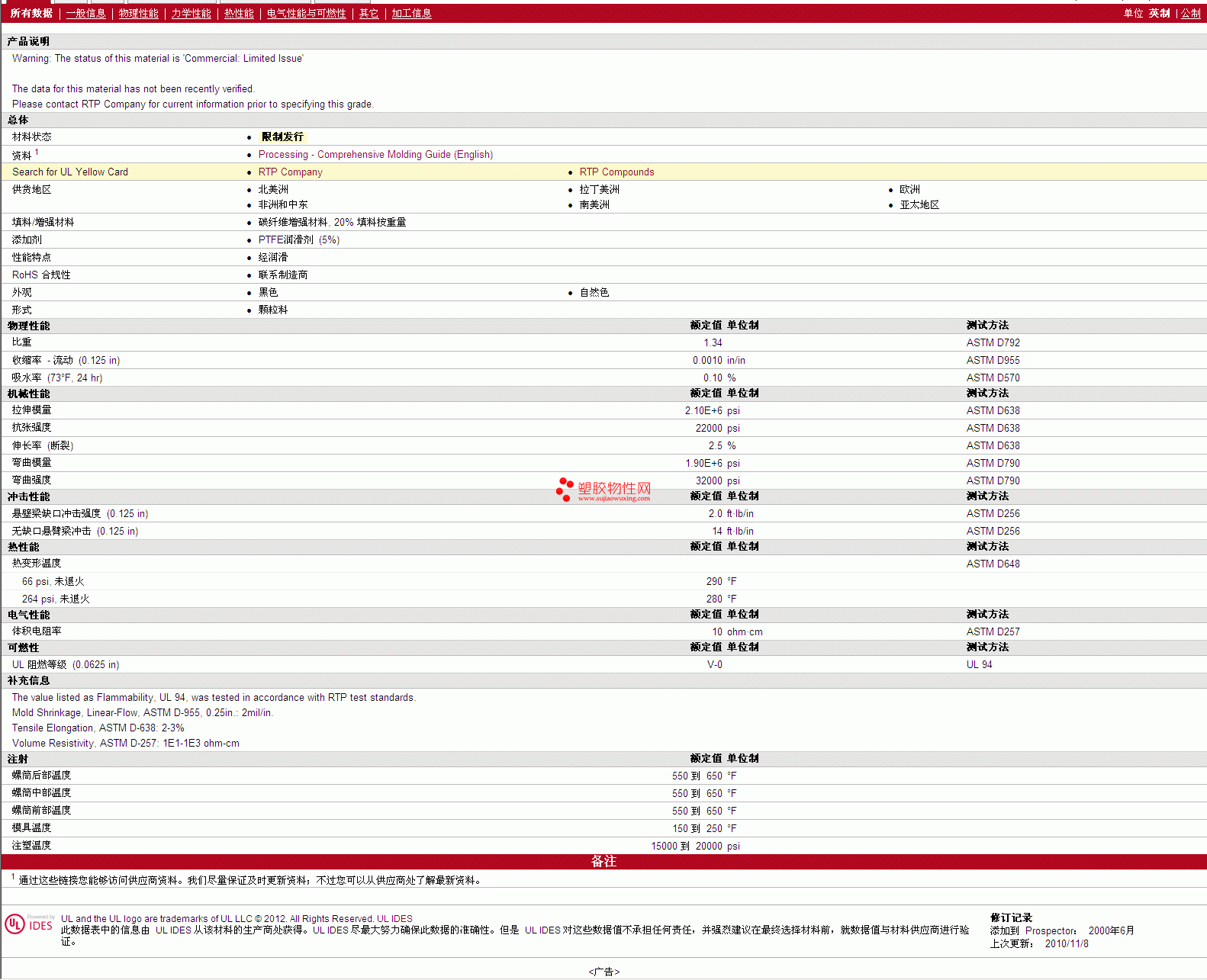 更多RTP Compounds PTFE 383 TFE 5 SE 物性表报价,图片、材质证明、UL黄卡、物质安全资料表(MSDS)等可来电咨询赵先生:13424755533或QQ: 27660005