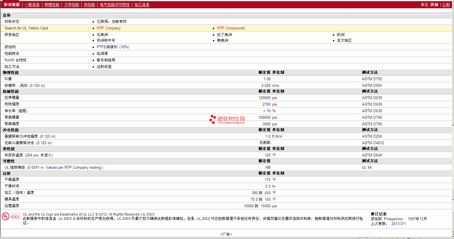 RTP Compounds PTFE 700 TFE 10 详细情况如图