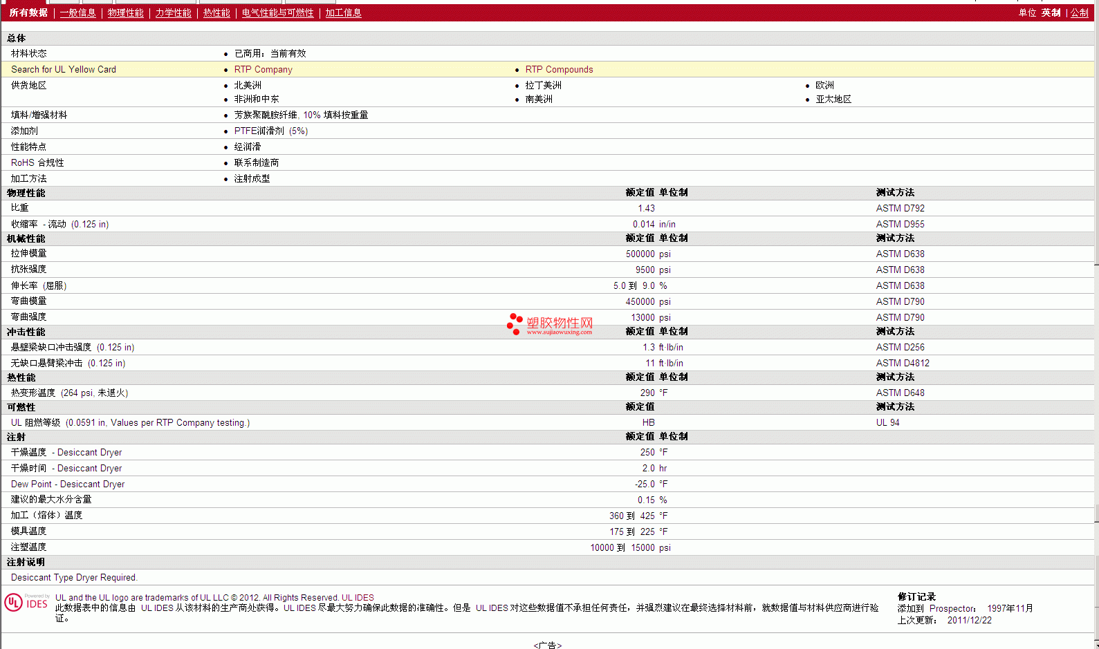 更多 RTP Compounds PTFE 800 AR 10 TFE 5 物性表报价,图片、材质证明、UL黄卡、物质安全资料表(MSDS)等可来电咨询赵先生:13424755533或QQ: 27660005