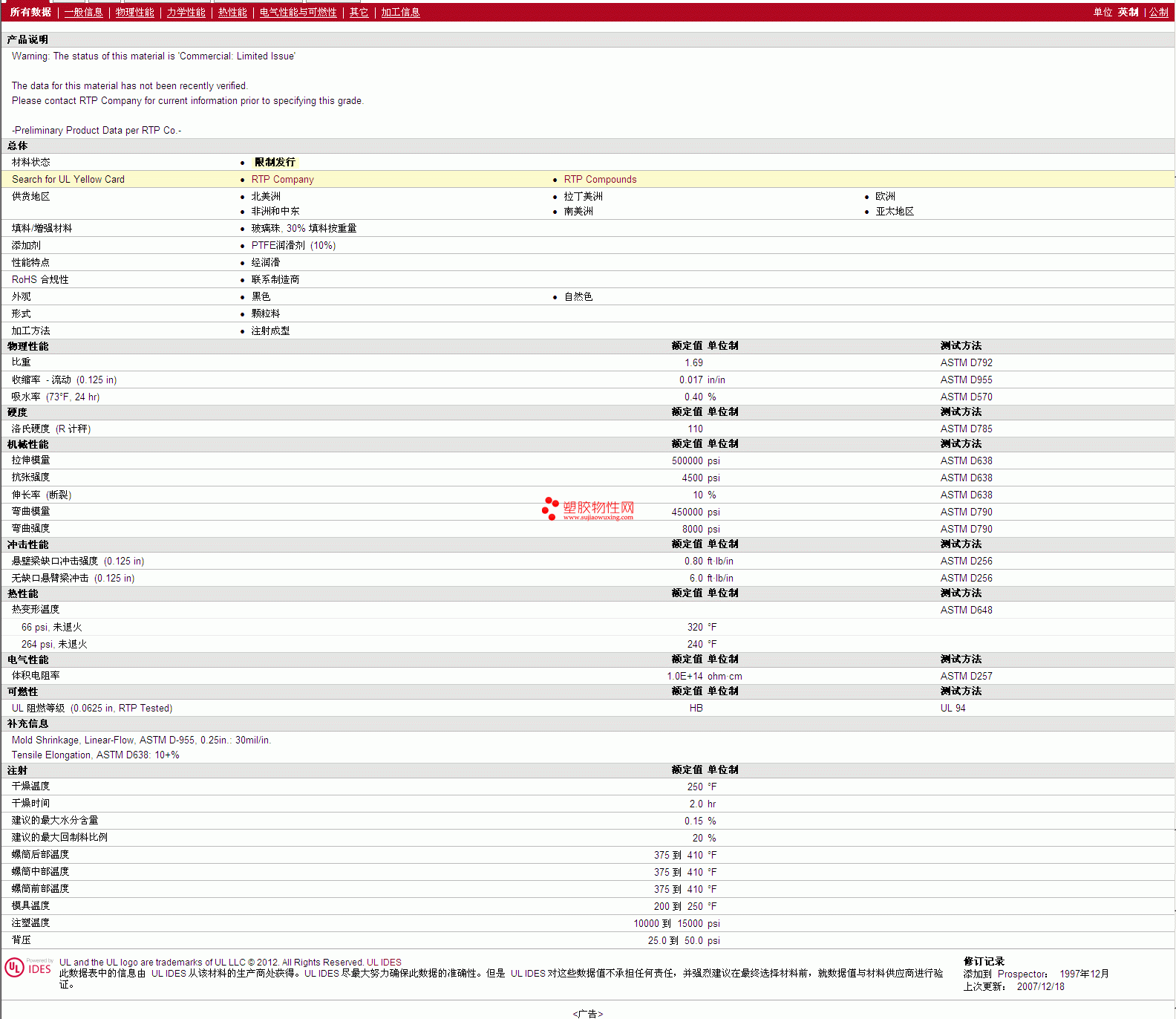 需了解RTP Compounds PTFE 800 GB 30 TFE 10 物性表材质证明、ROHS(SGS)报告、物质安全资料表(MSDS)、UL黄卡等可来电咨询:赵先生:13424755533或QQ: 27660005