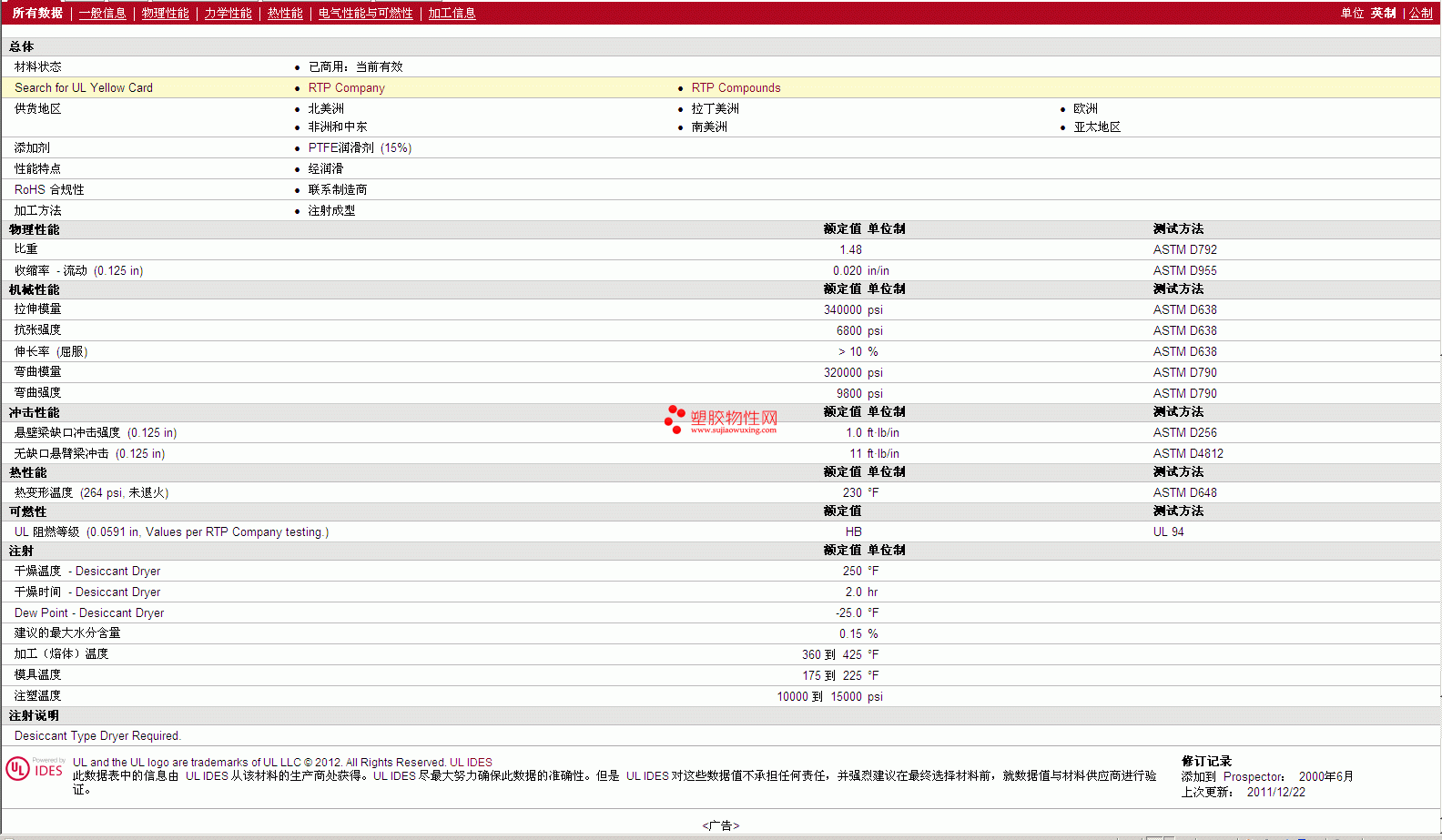 如需了解RTP Compounds PTFE 800 TFE 15 LP 物性表更多详情,ROHS(SGS)报告、物质安全资料表(MSDS)、材质证明、UL黄卡等,最新行情报价等可来电咨询:赵先生:13424755533或QQ: 27660005