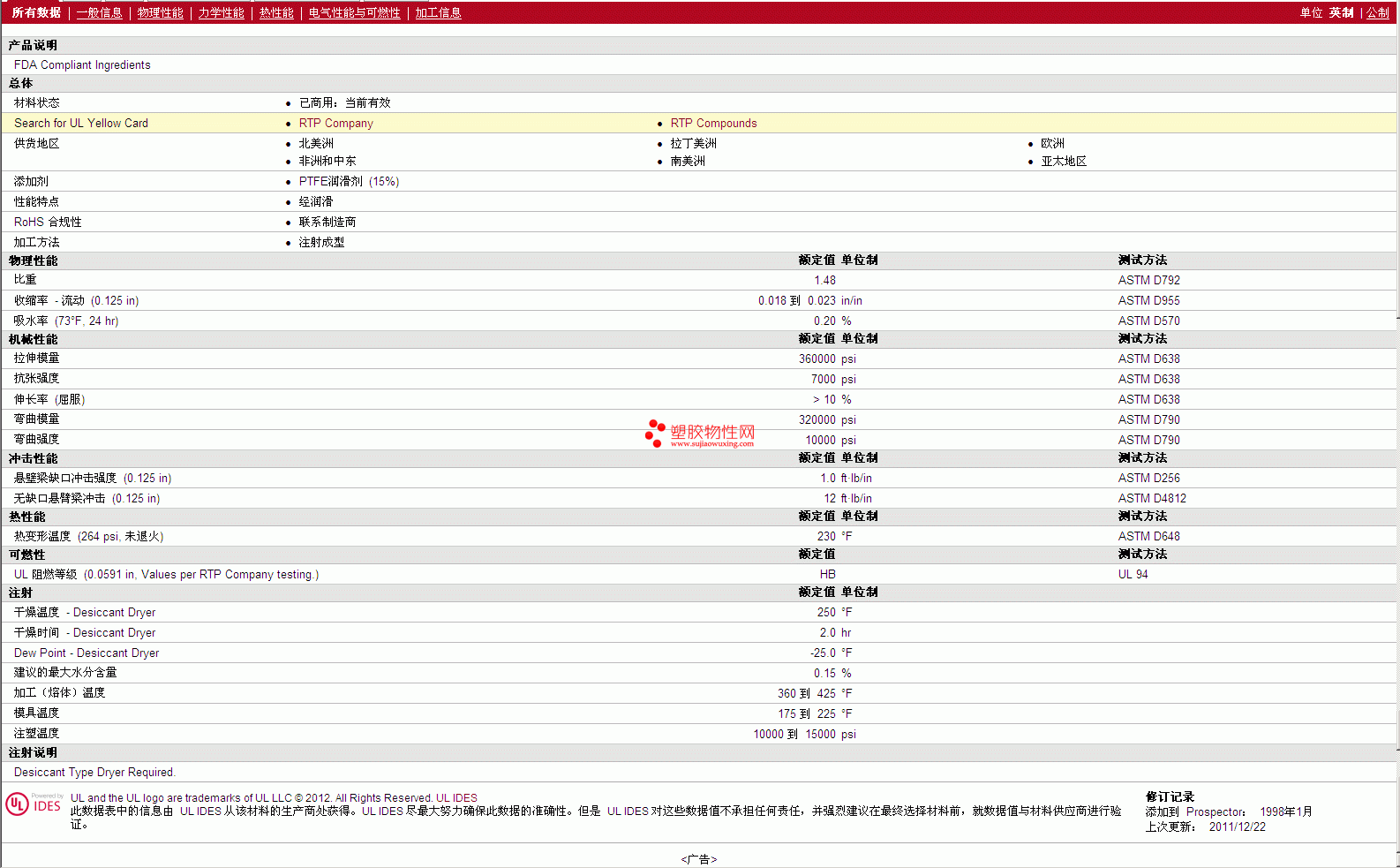 需了解RTP Compounds PTFE 800 TFE 15 Z 物性表材质证明、ROHS(SGS)报告、物质安全资料表(MSDS)、UL黄卡等可来电咨询:赵先生:13424755533或QQ: 27660005