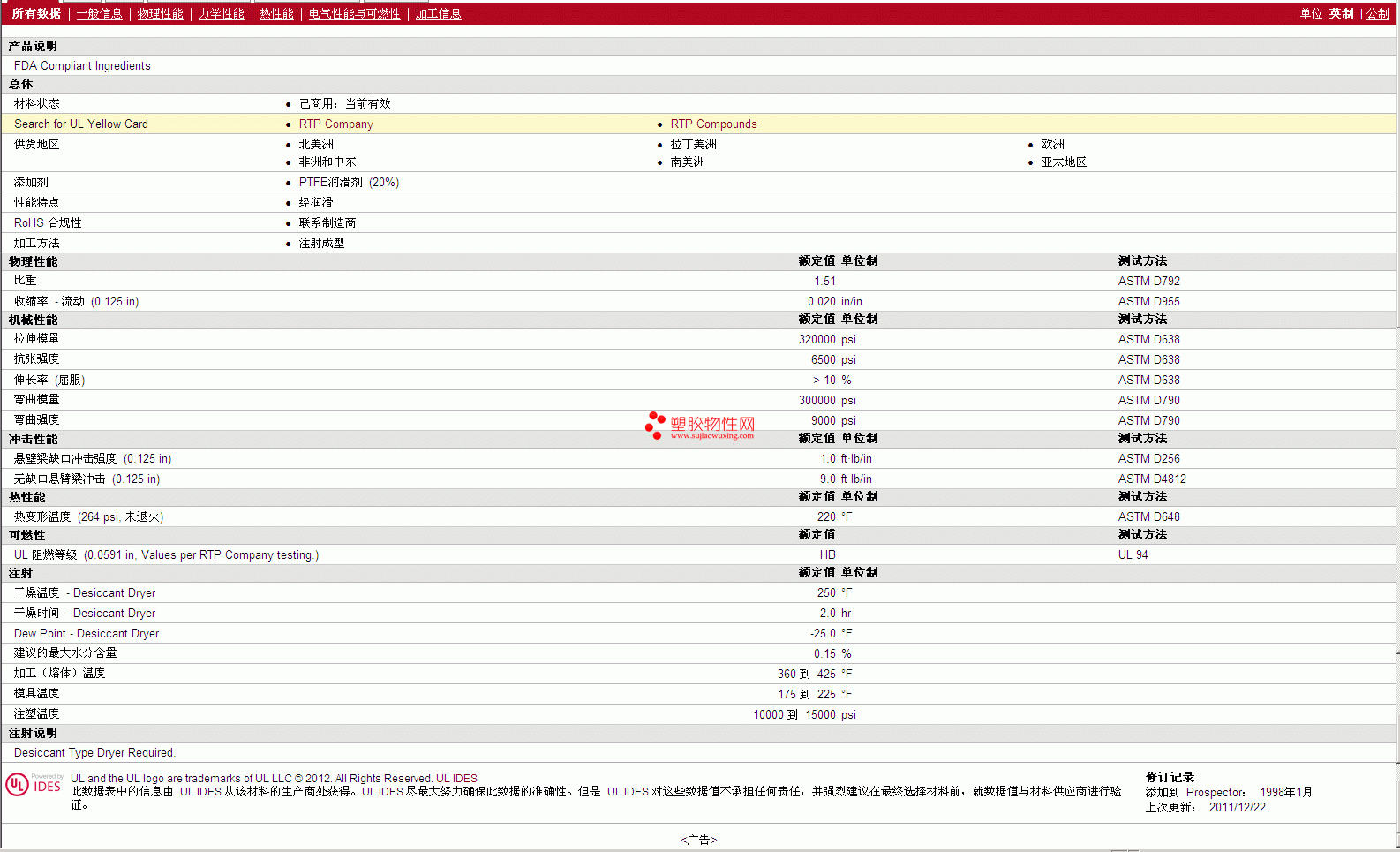 更多RTP Compounds PTFE 800 TFE 20 Z 物性表报价,图片、材质证明、UL黄卡、物质安全资料表(MSDS)等可来电咨询赵先生:13424755533或QQ: 27660005