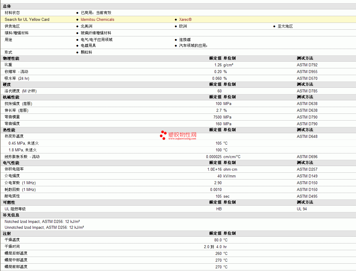 Xarec sps D13XL物性表 见图片