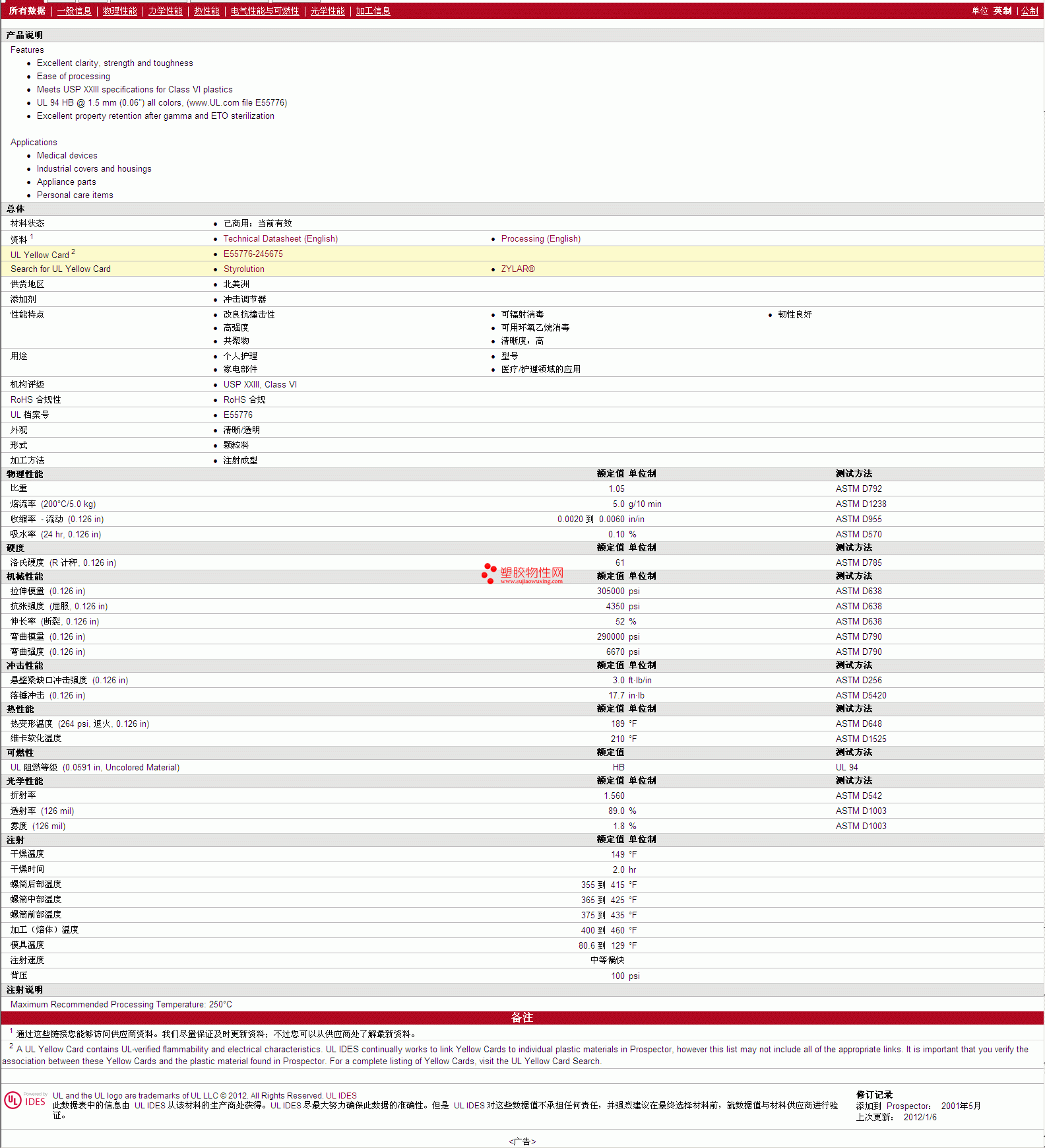 更多ZYLAR SMMA 530 物性表报价,图片、材质证明、UL黄卡、物质安全资料表(MSDS)等可来电咨询赵先生:13424755533或QQ: 27660005