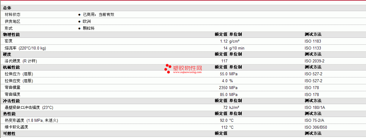 ABSCOM pc/ABS B100物性表见图片