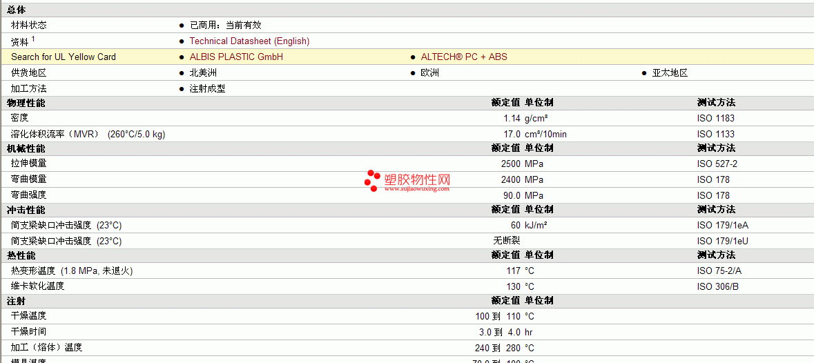 ALTECH PC + ABS A 1000/107物性表 见图片