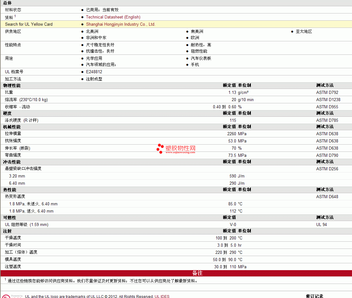 Hylex PC P1332L物性表
