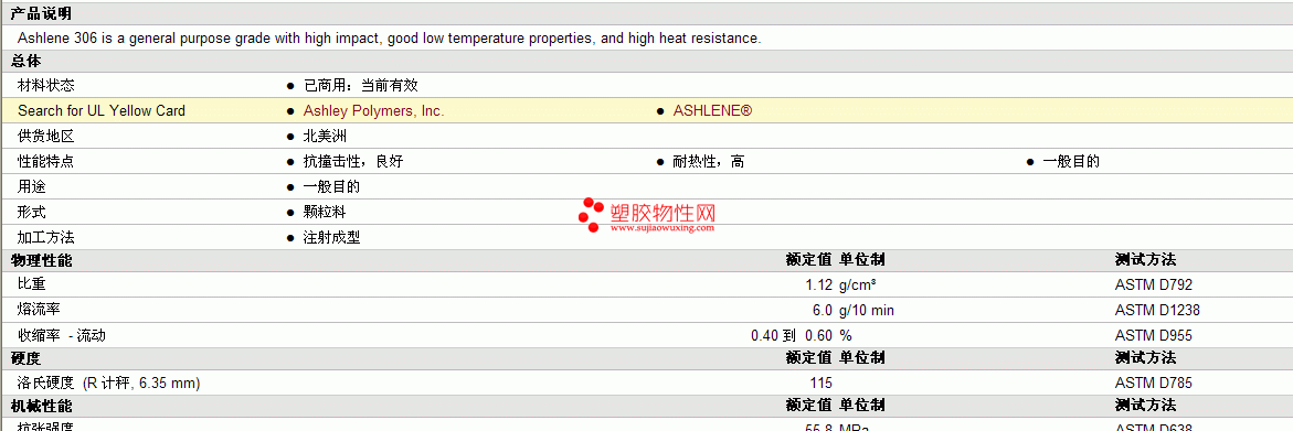 ASHLENEpc/ABS 306物性表 见图片