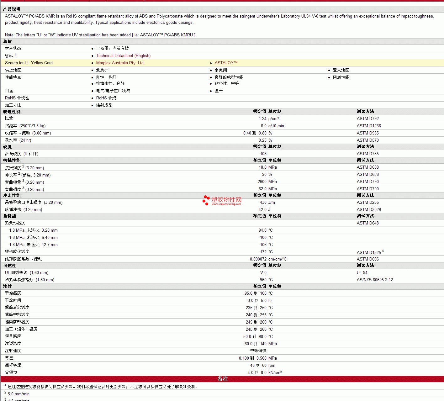 ASTALOY PC/ABS KMR物性表 更多资料见下图