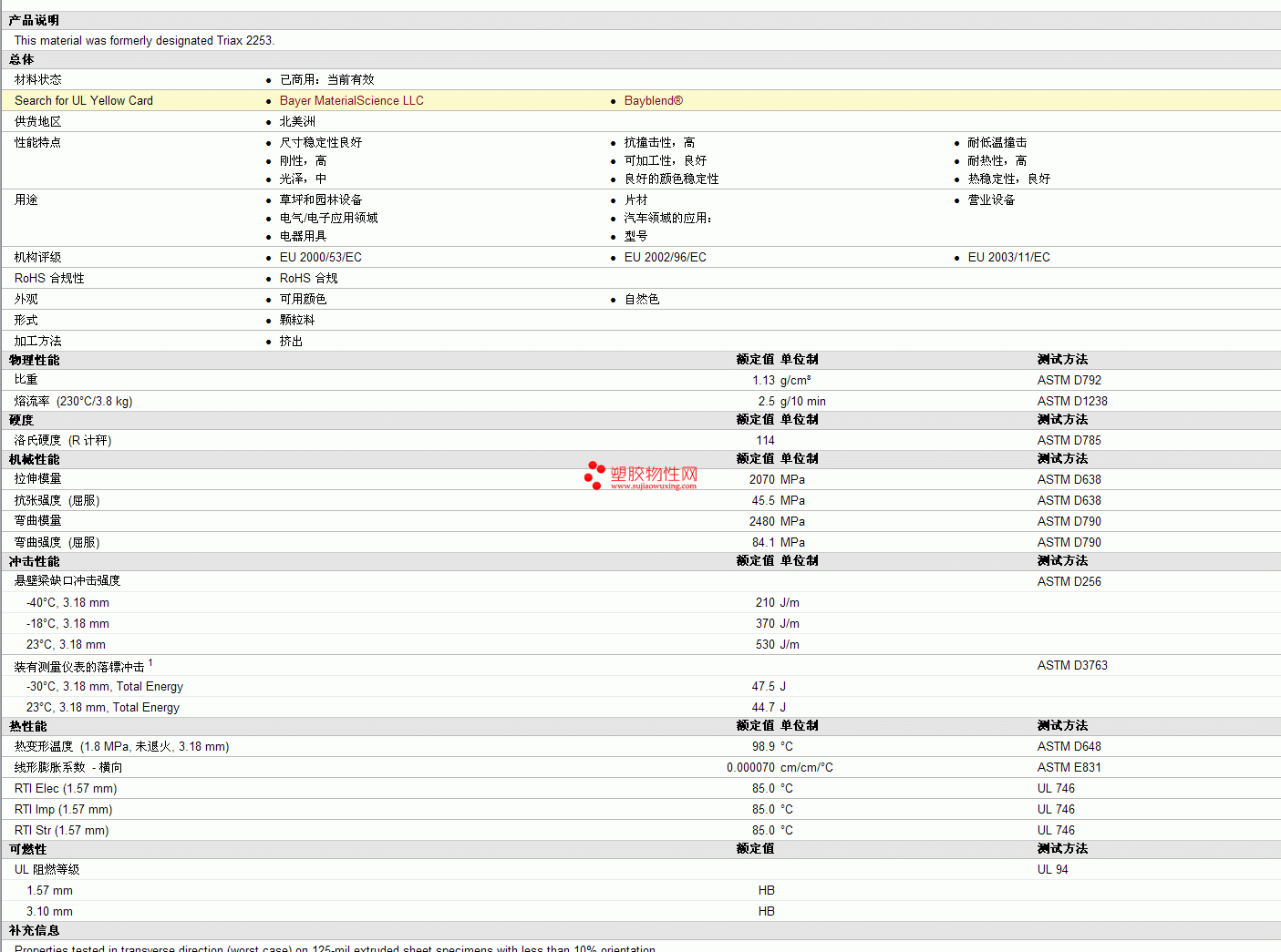Bayblend PC/ABS 2253物性表更多资料见下图