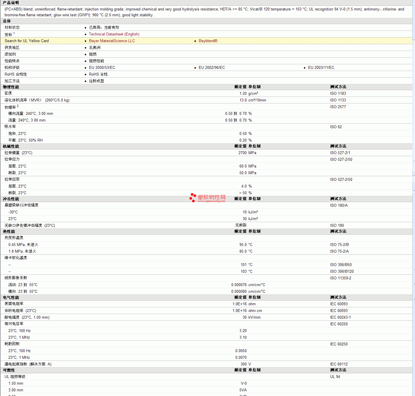 | 溶化体积流率(MVR) (260°C/5.0 kg) | 13.0 | cm³/10min | ISO 1133 |