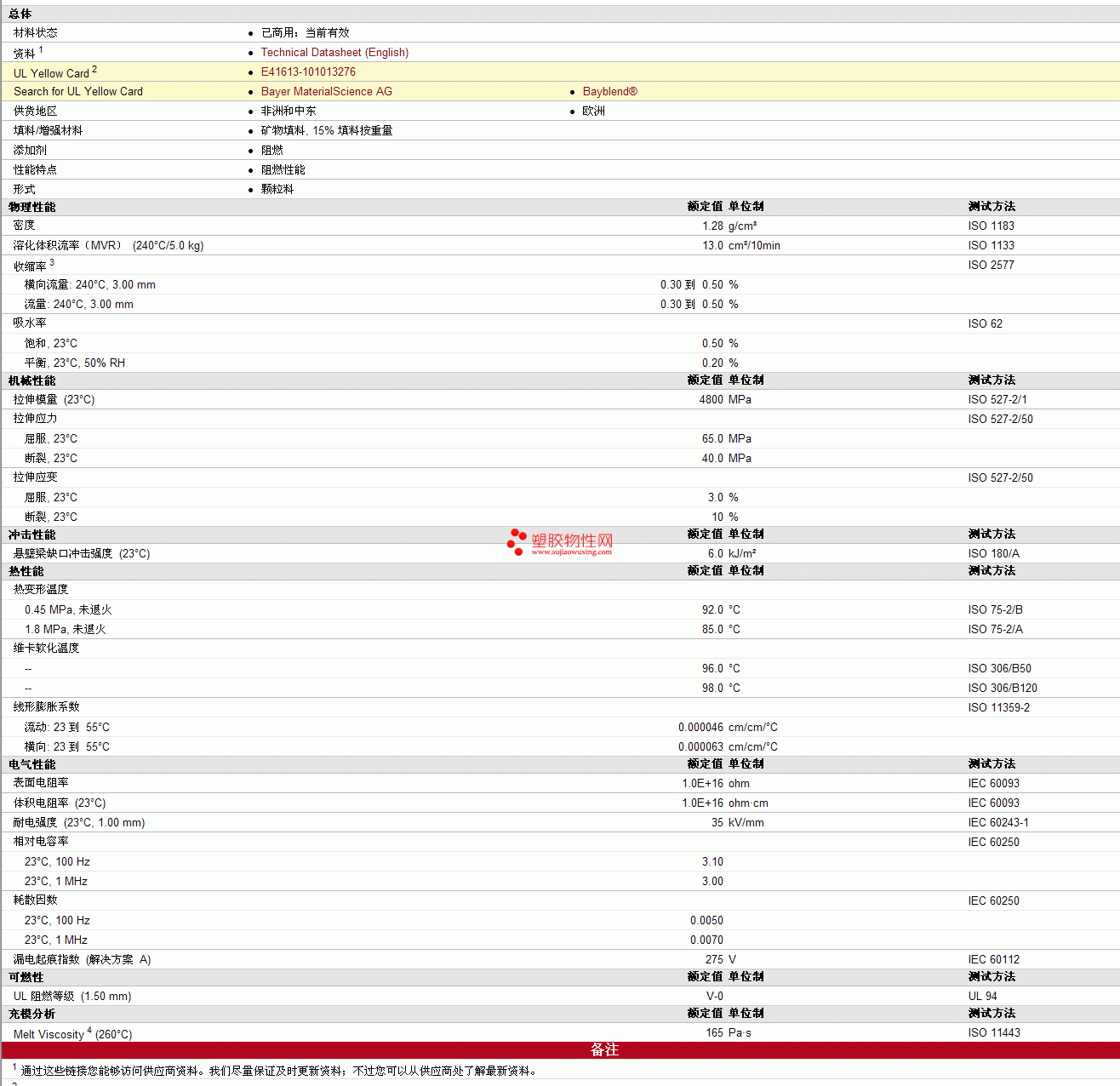 Bayblend PC/ABS FR3021物性表 更多资料见下图