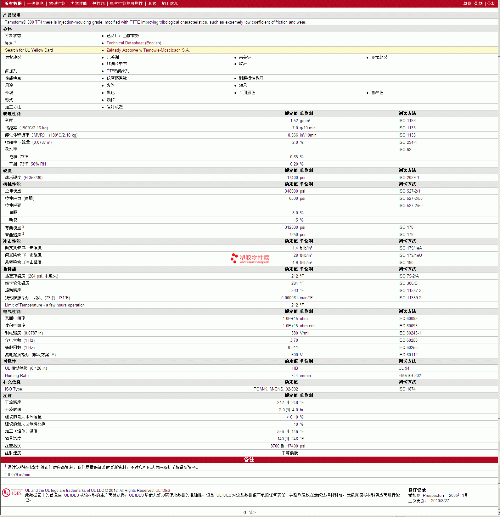 需了解Tarnoform PTFE 300 TF4 物性表更多详情,材质证明、ROHS(SGS)报告、物质安全资料表(MSDS)、UL黄卡等,最新行情报价等可来电咨询:赵先生:13424755533或QQ: 27660005