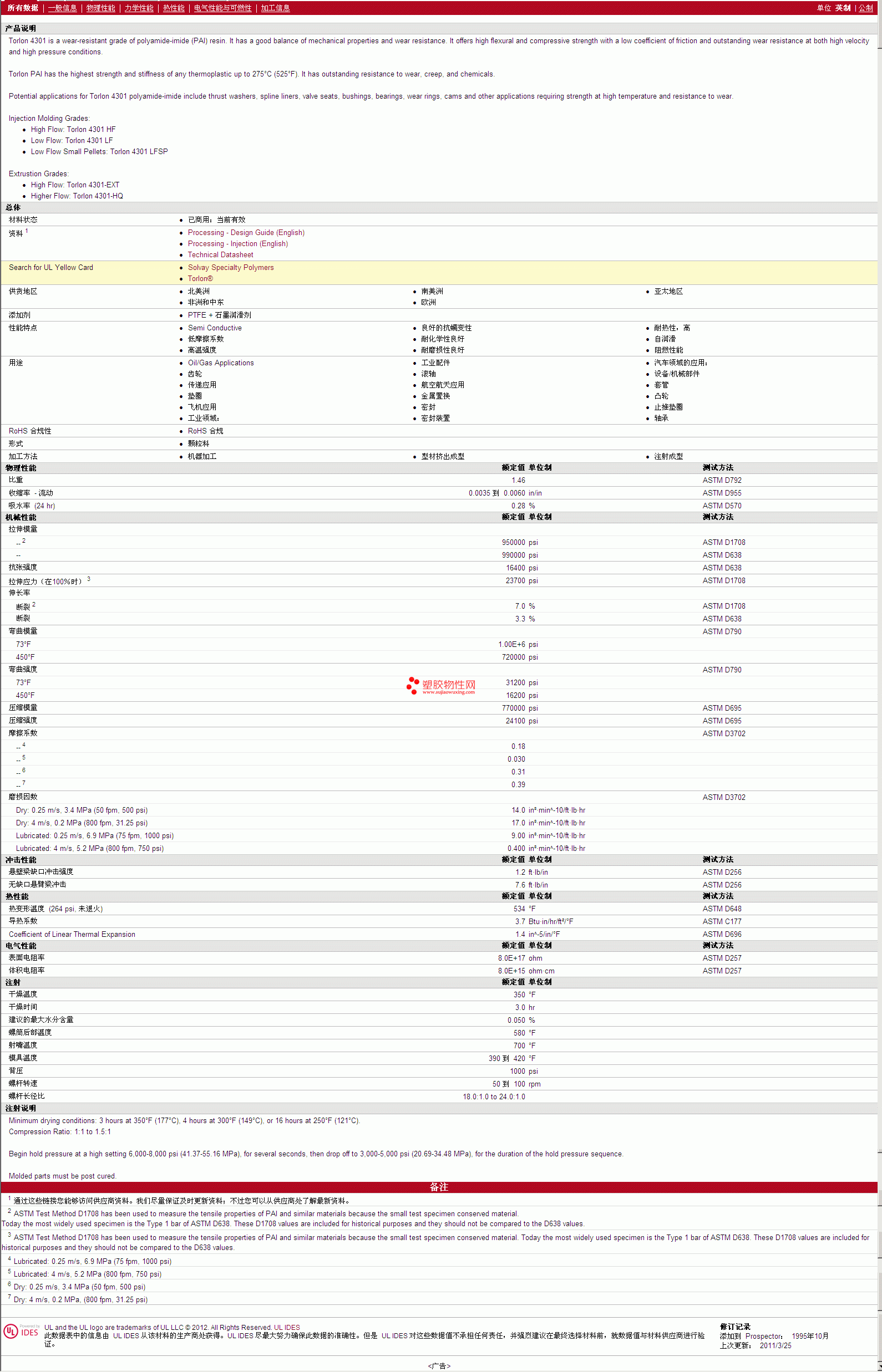 需了解Torlon PTFE 4301 物性表材质证明、ROHS(SGS)报告、物质安全资料表(MSDS)、UL黄卡等可来电咨询:赵先生:13424755533或QQ: 27660005