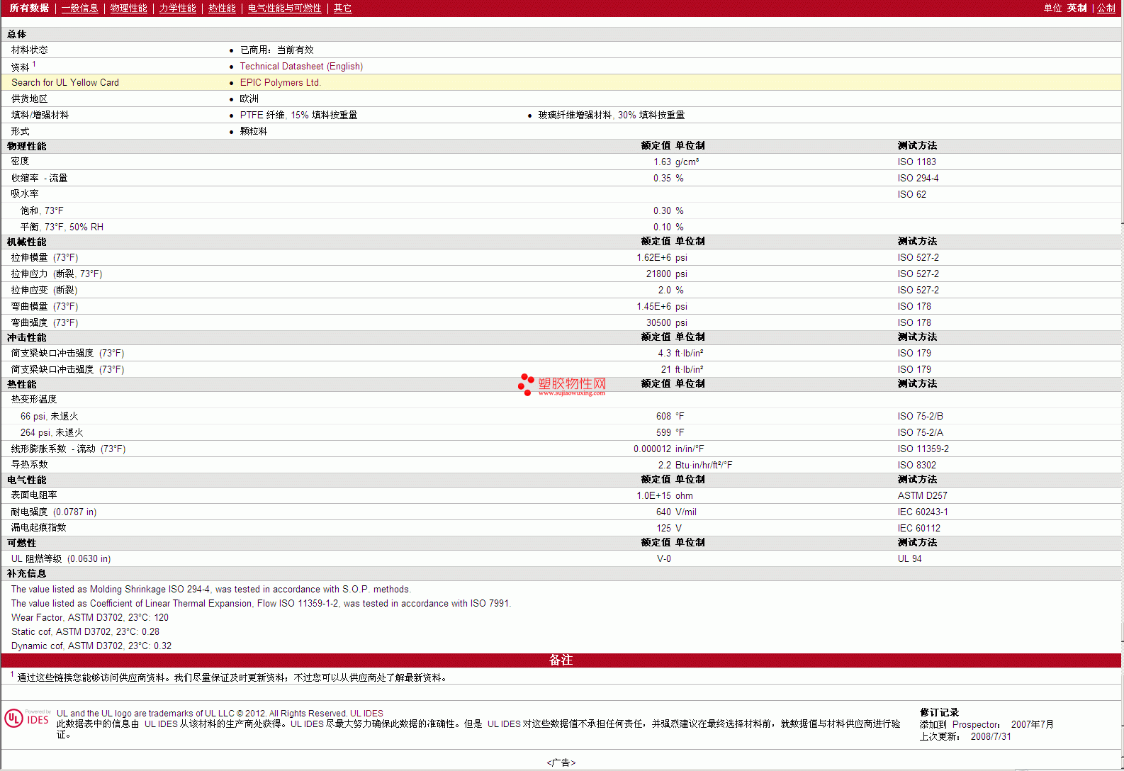 更多TRIBOCOMP PTFE PEEK GF30 TS0 物性表图片,报价、物质安全资料表(MSDS)、材质证明、UL黄卡等,最新行情报价等可来电咨询赵先生:13424755533或QQ: 27660005