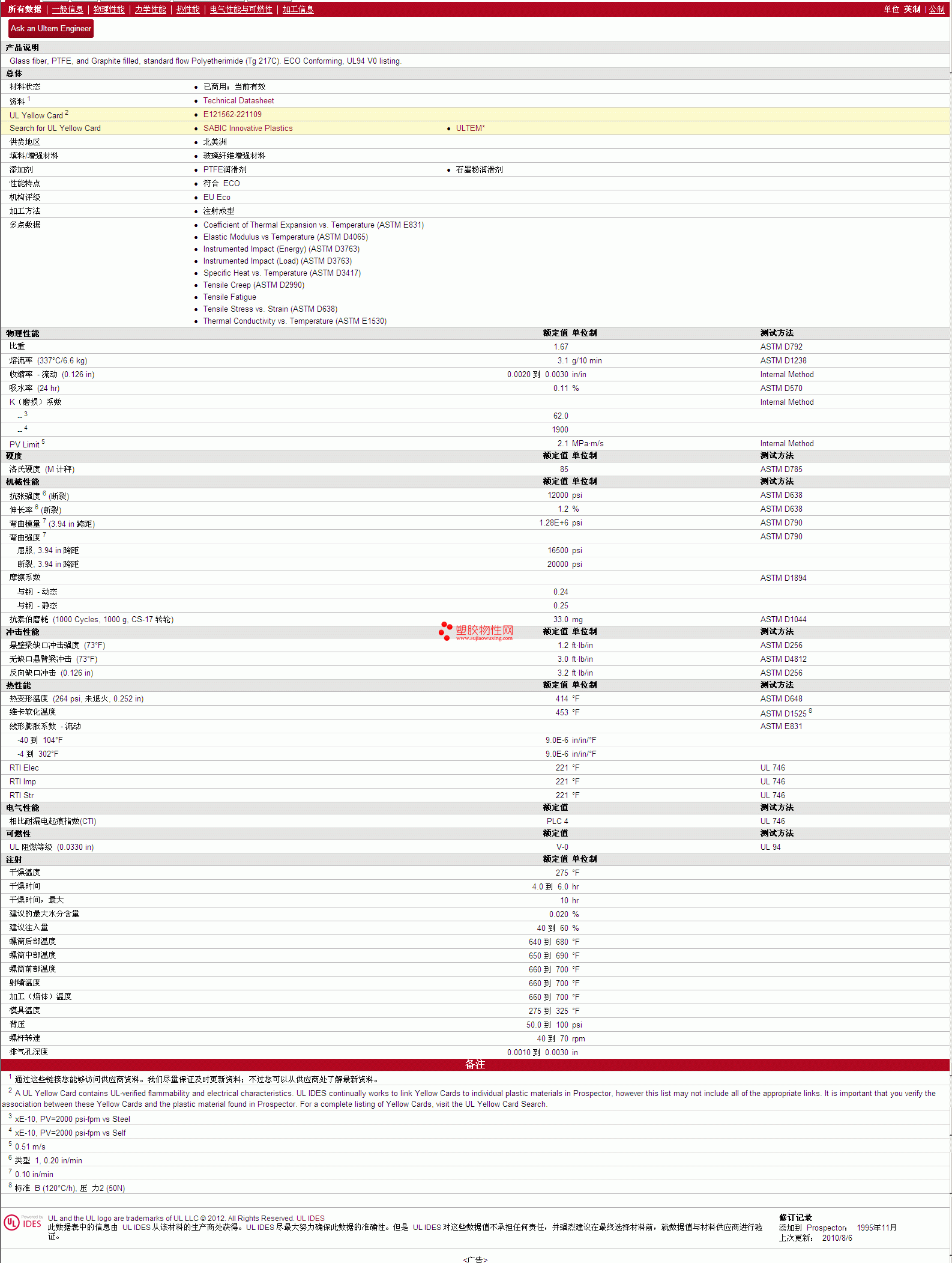 更多ULTEM PTFE 4000 Resin 物性表图片,报价、物质安全资料表(MSDS)、材质证明、UL黄卡等,最新行情报价等可来电咨询赵先生:13424755533或QQ: 27660005