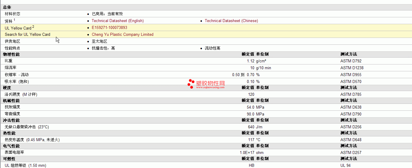Cheng pc/ABS Yu C1100物性表