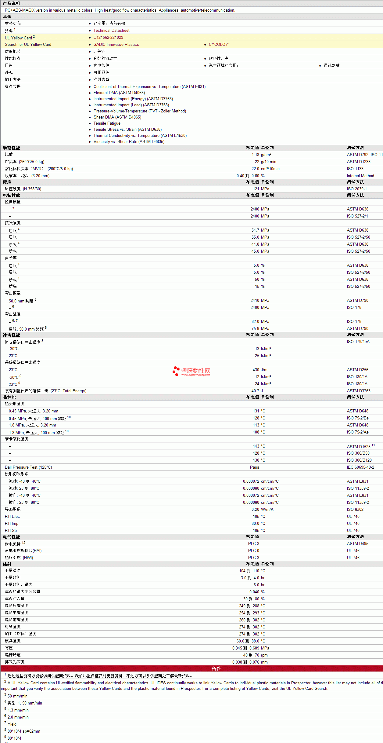 CYCOLOY pc/ABS C1200HFM Resin物性表更多资料见下图