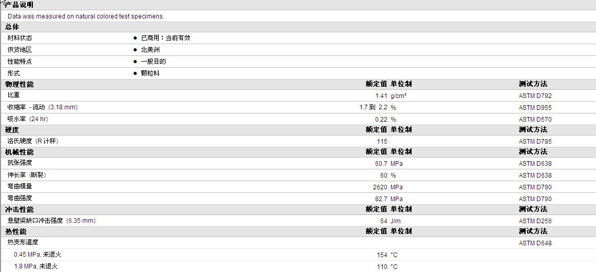 更多TYNEA POM 900物性表资料见下图: