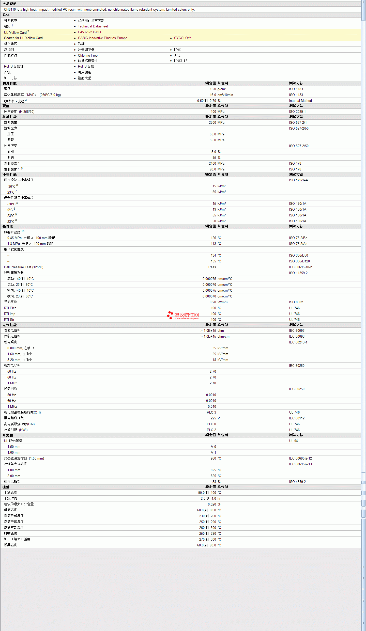 CYCOLOY pc/ABSCH6410 Resin物性表更多资料见下图