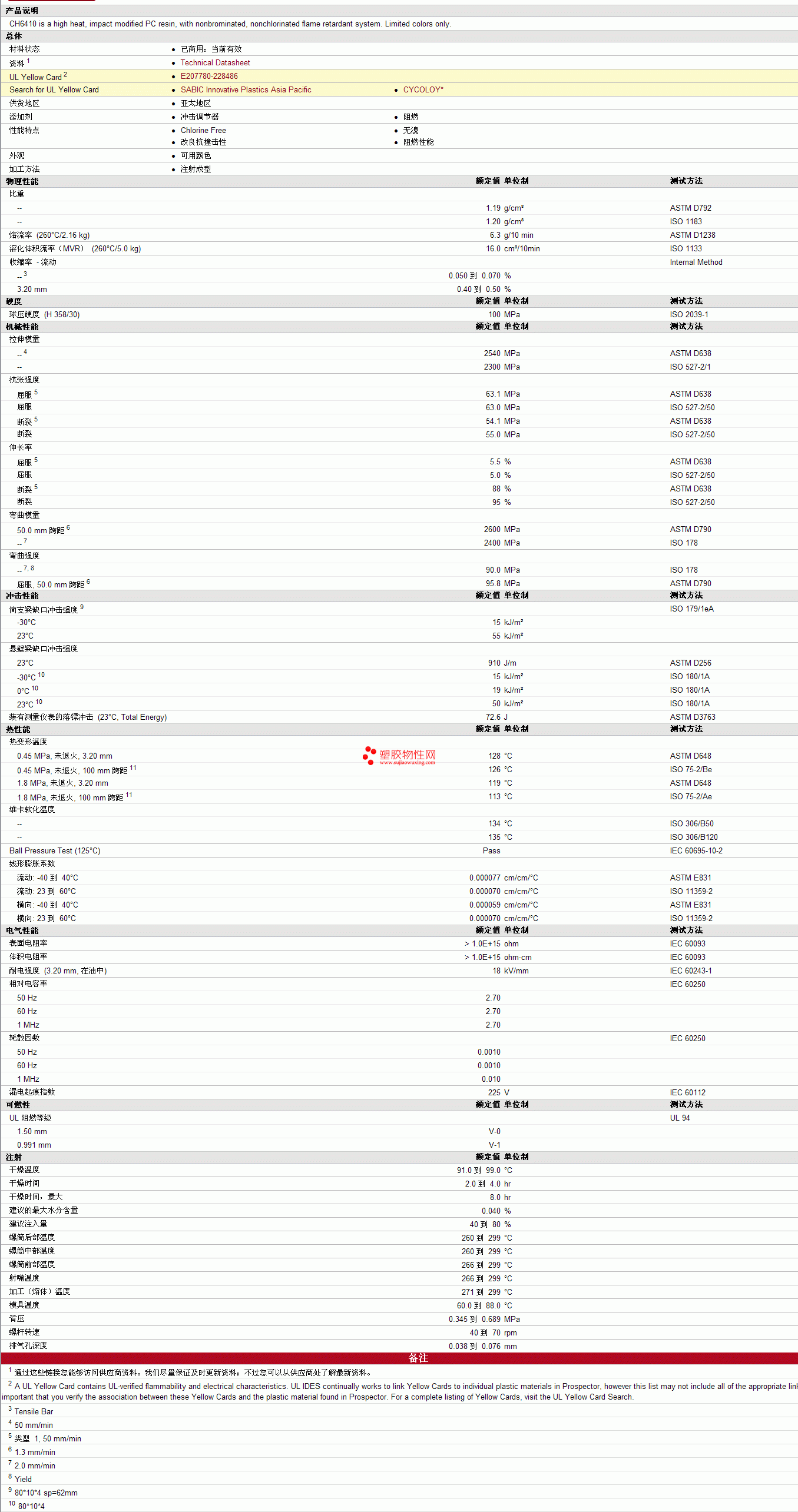 CYCOLOY pc/ABS CH6410 Resin物性表更多资料见下图